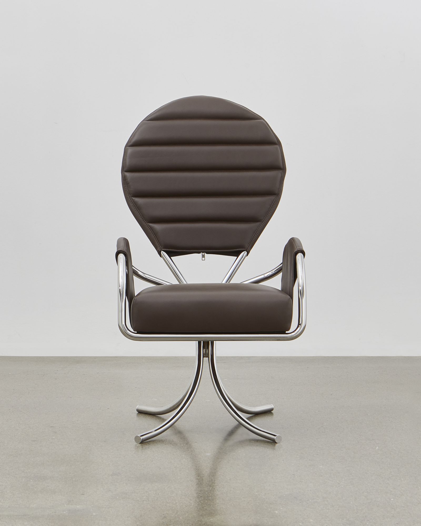The PH Pope Chair is available with either chromed steel tubes or a dark copper (gloss) finish and upholstery with the exclusive aniline leather in five colours: mocca, walnut, Indian red, black or un-dyed and Kjellerup Væveri wool fabric in five different colours.