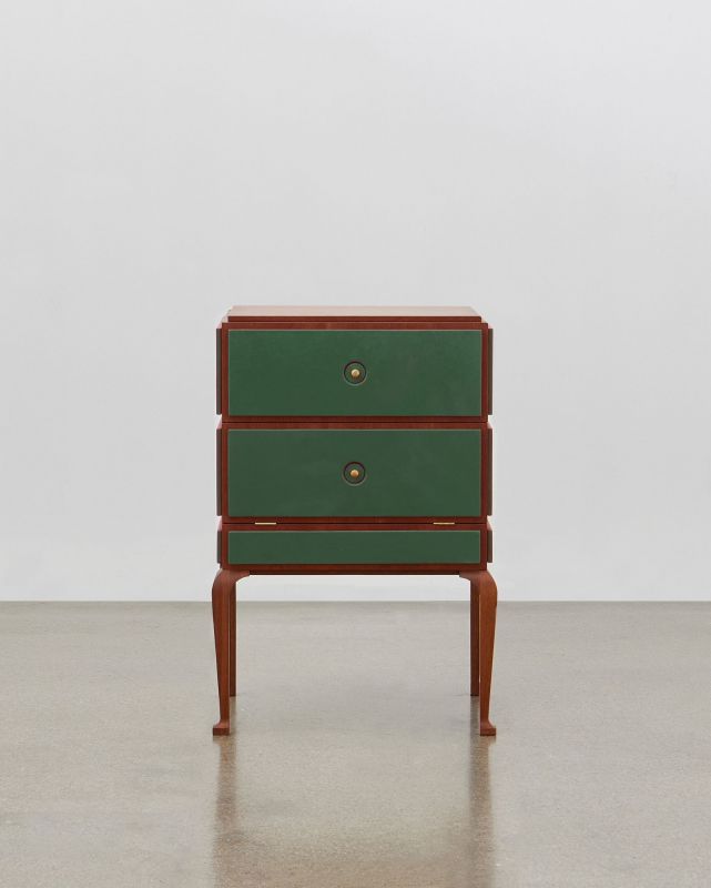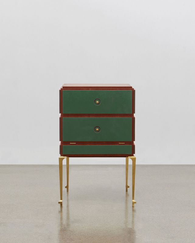 This small but perfectly formed storage piece is made out of wood and can be combined with soft leather on the panels.
