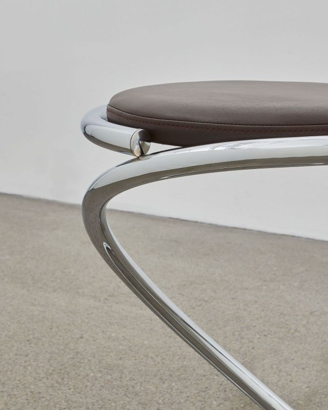 The PH Snake Stool is also available with leather upholstery in two different presentations: either with fully visible steel tubes where the smooth lines and flowing energy of the tubes are preserved together with comfortable seating or alternatively with almost coverage of the steel tubes. Available with either chromed steel tubes or a dark copper (gloss) finish and upholstery with the exclusive aniline leather in five colours: mocca, walnut, Indian red, black or un-dyed and Kjellerup Væveri wool fabric in five different colours.