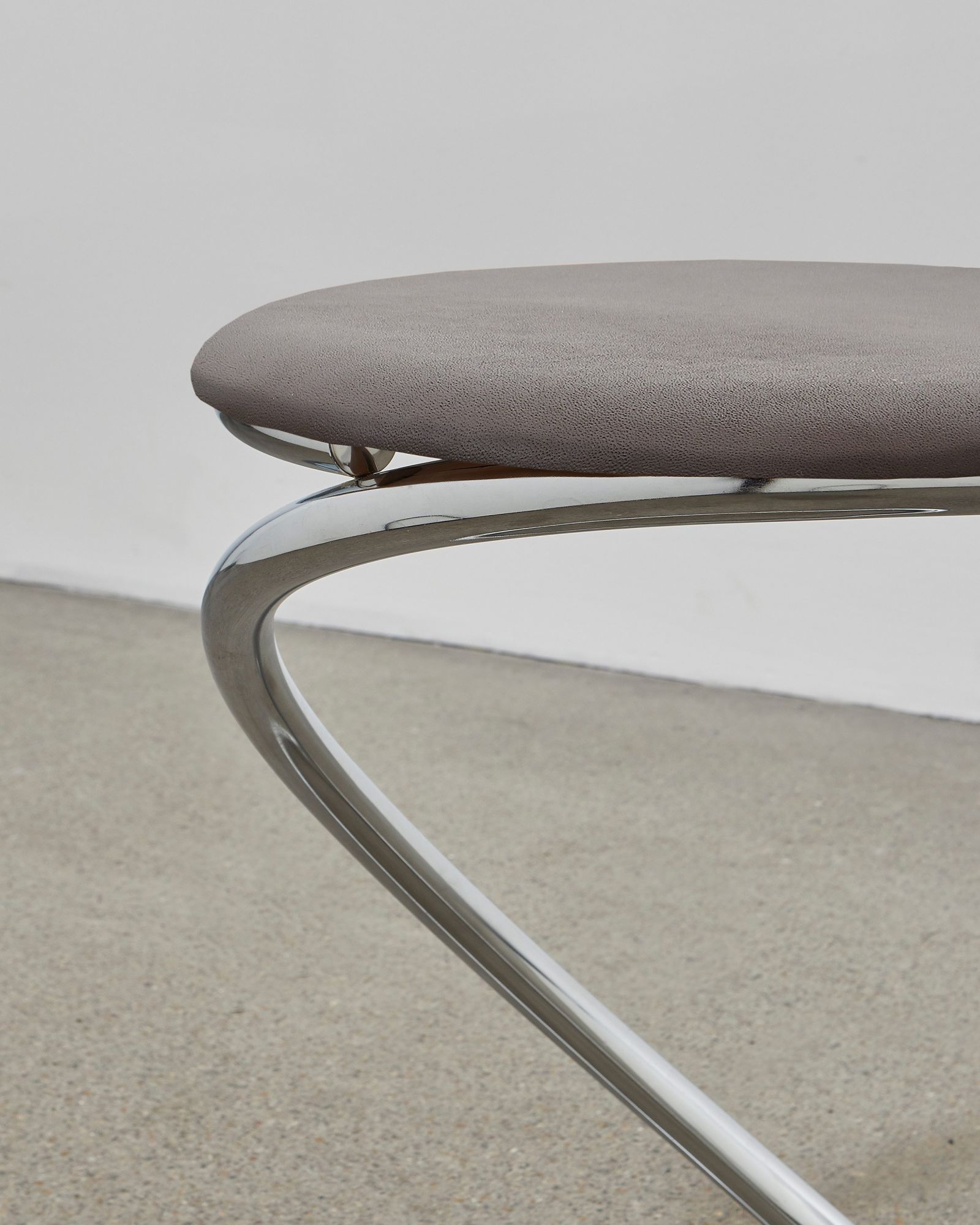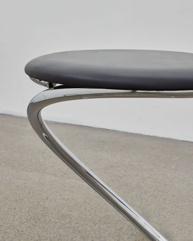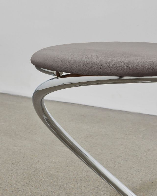 The PH Snake Stool is also available with leather upholstery in two different presentations: either with fully visible steel tubes where the smooth lines and flowing energy of the tubes are preserved together with comfortable seating or alternatively with almost coverage of the steel tubes. Available with either chromed steel tubes or a dark copper (gloss) finish and upholstery with the exclusive aniline leather in five colours: mocca, walnut, Indian red, black or un-dyed and Kjellerup Væveri wool fabric in five different colours.