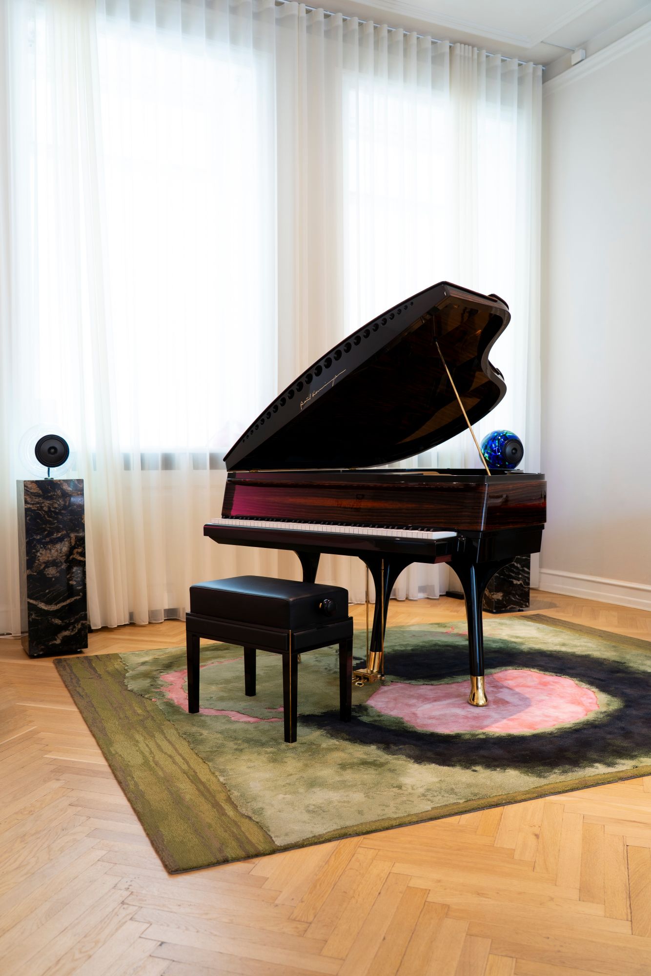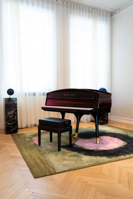 Copenhagen-based piano company ToneArt holds the worldwide exclusive license to produce Poul Henningsen’s piano designs. This special Curated Edition instrument has been handcrafted around a piano action that has been hand-selected for its superior combination of craftsmanship and legacy. The piano’s golden cast-iron frame is complemented by green felts in the interior.