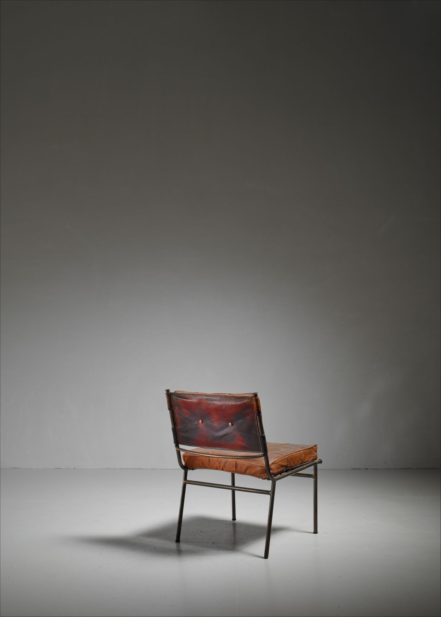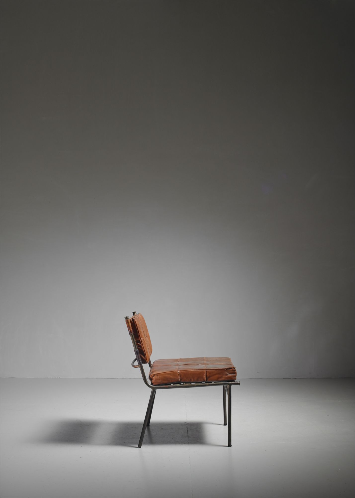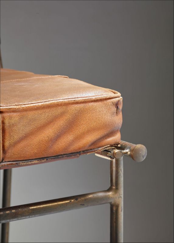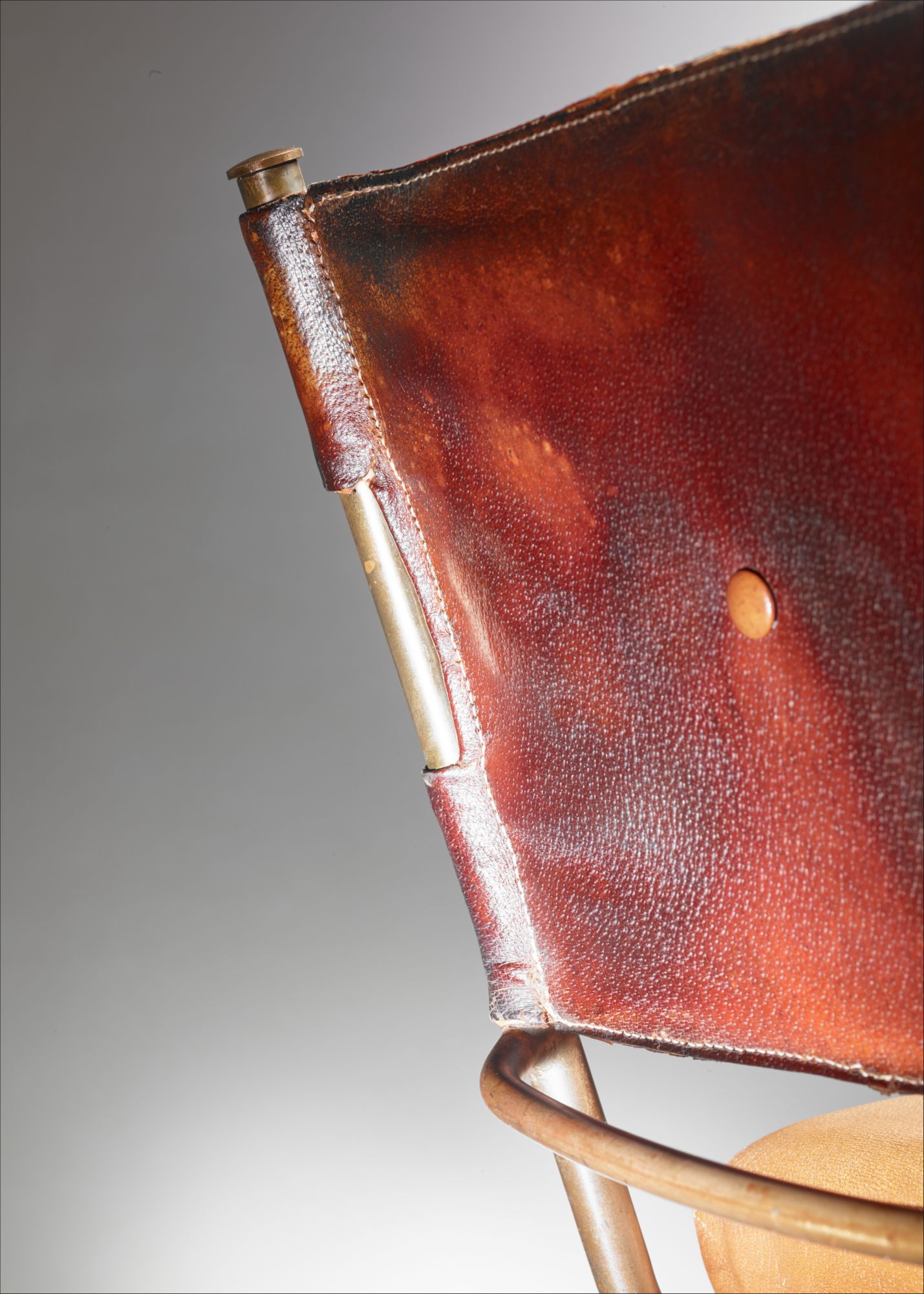 Rare Mathieu Mate?got Chair with Brass Frame and Leather Seat and Back, 1950s