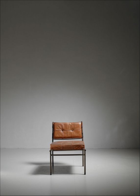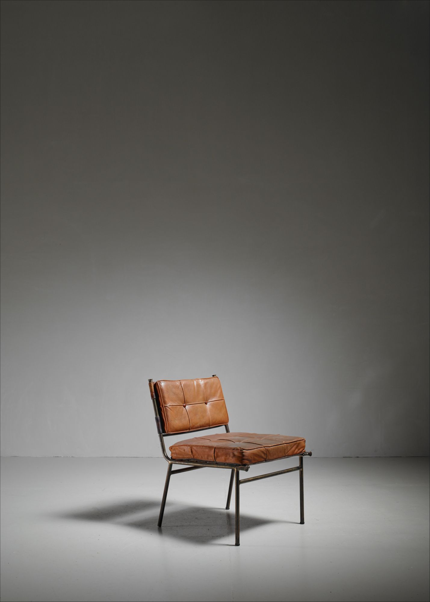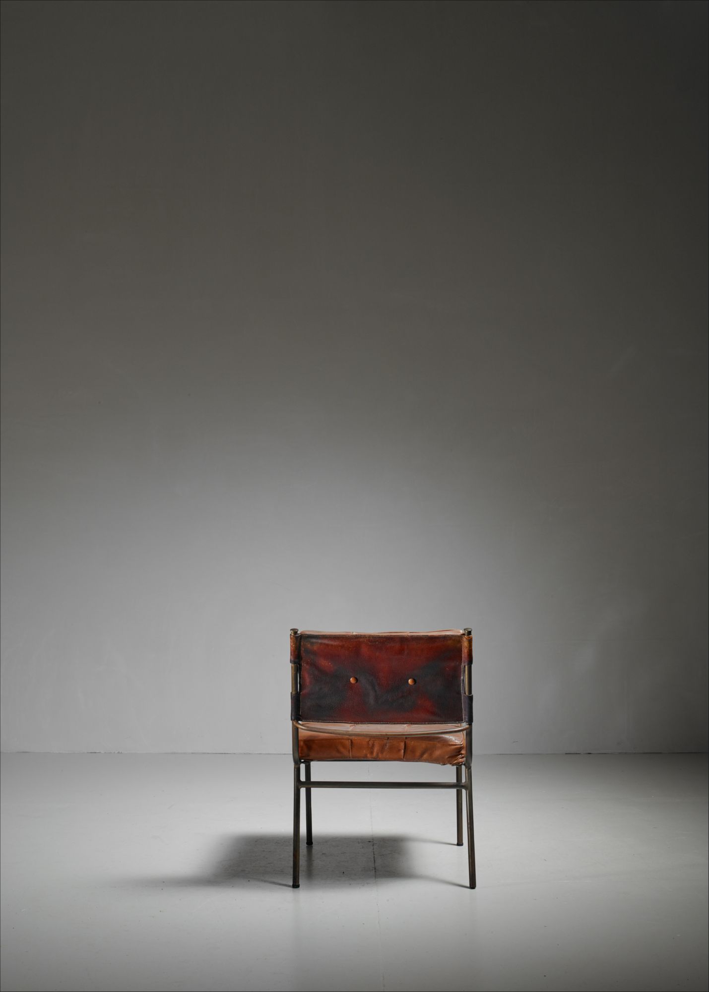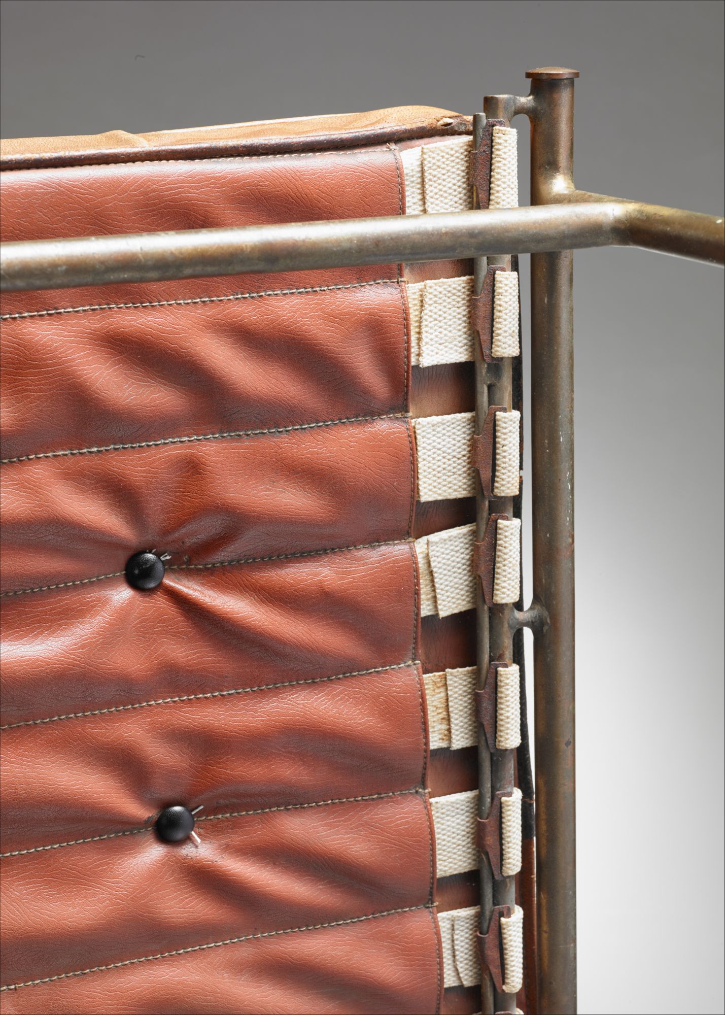 Rare Mathieu Mate?got Chair with Brass Frame and Leather Seat and Back, 1950s