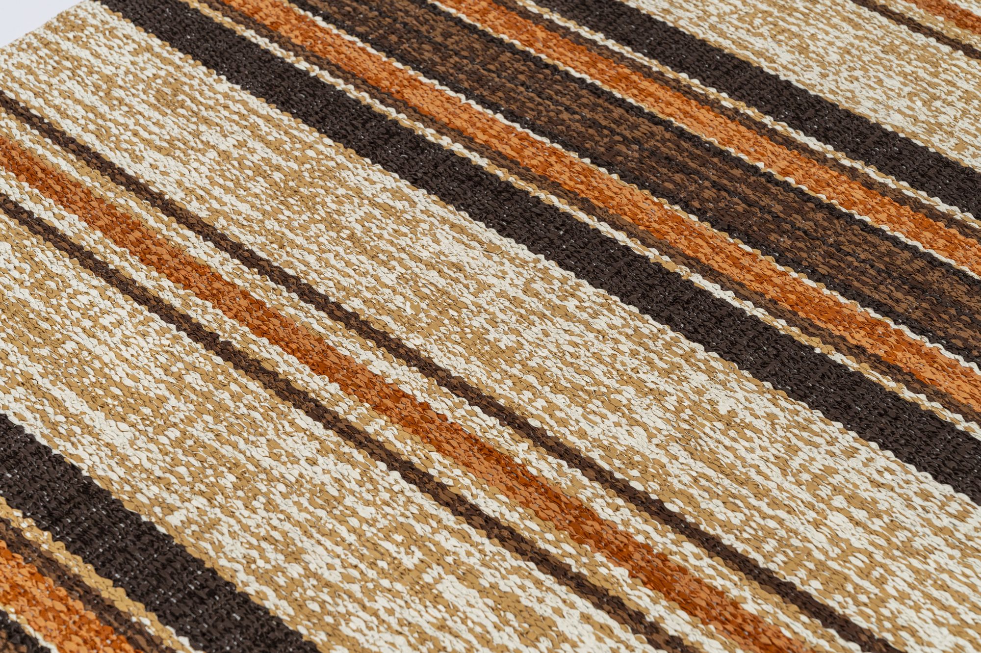 Stripes pattern, understated and nuanced color palette of browns and beiges.