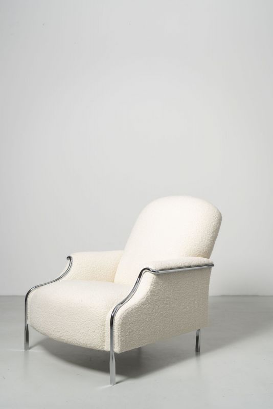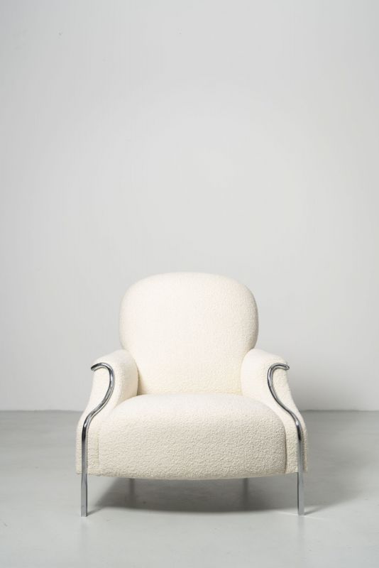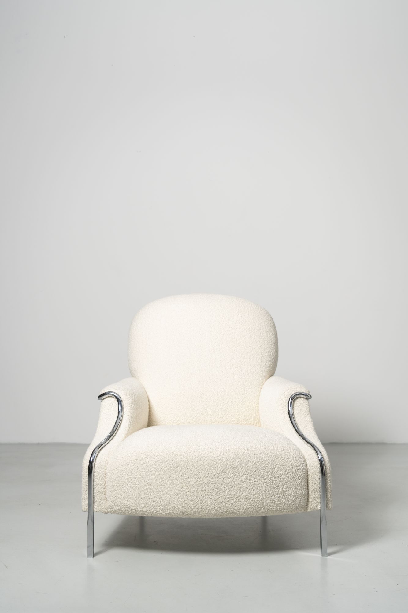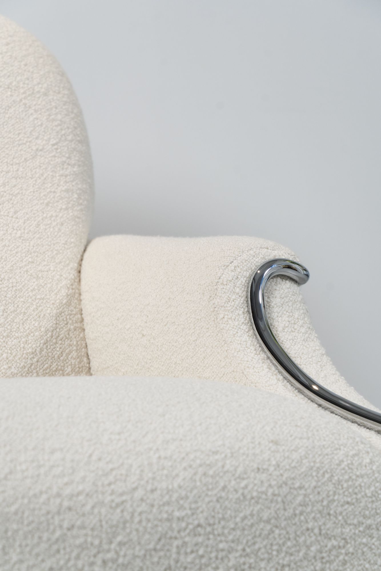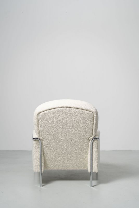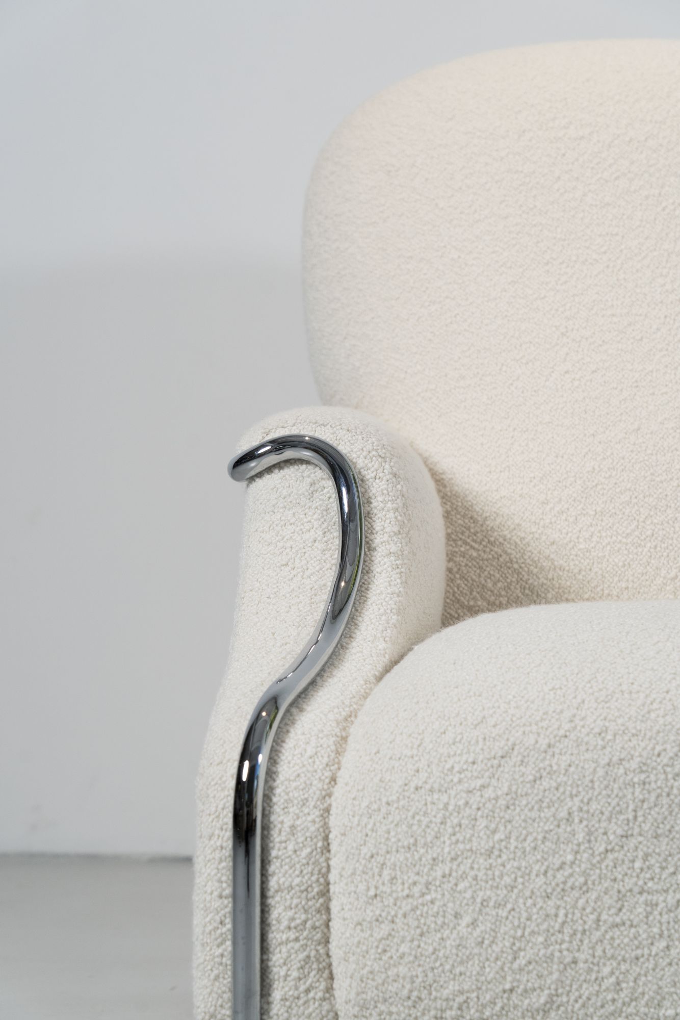 Sophisticate Lounge Chair Low - chrome steel tube frame with boucle upholstery