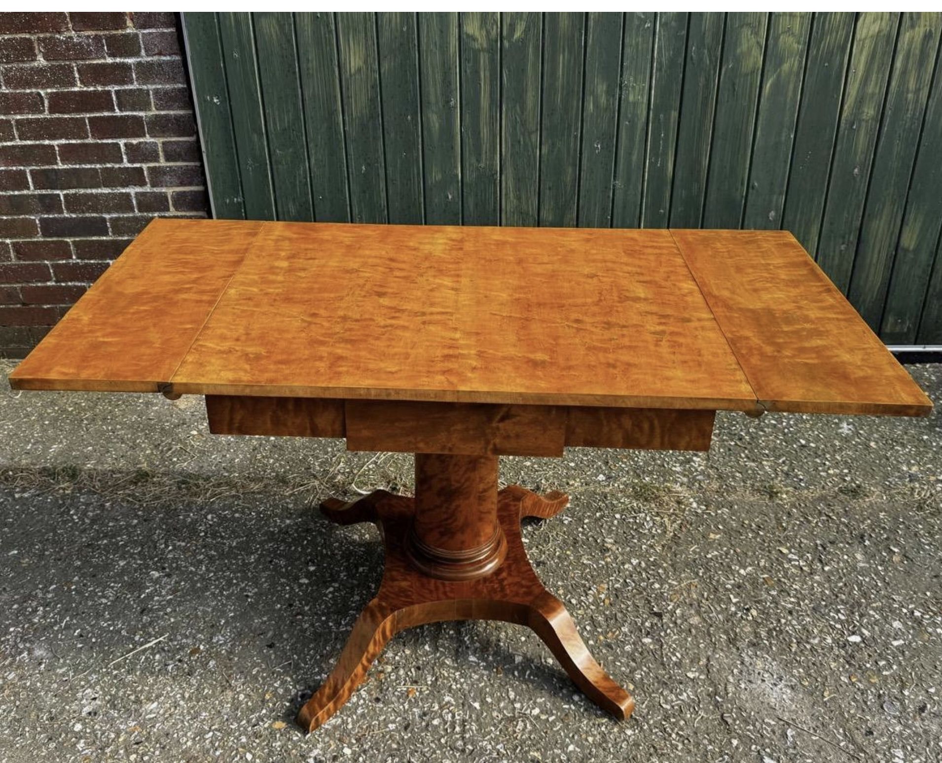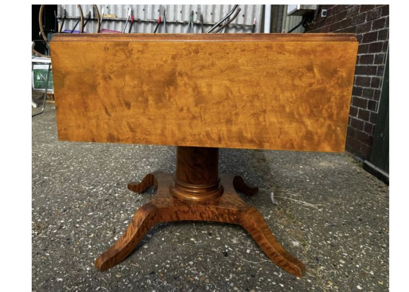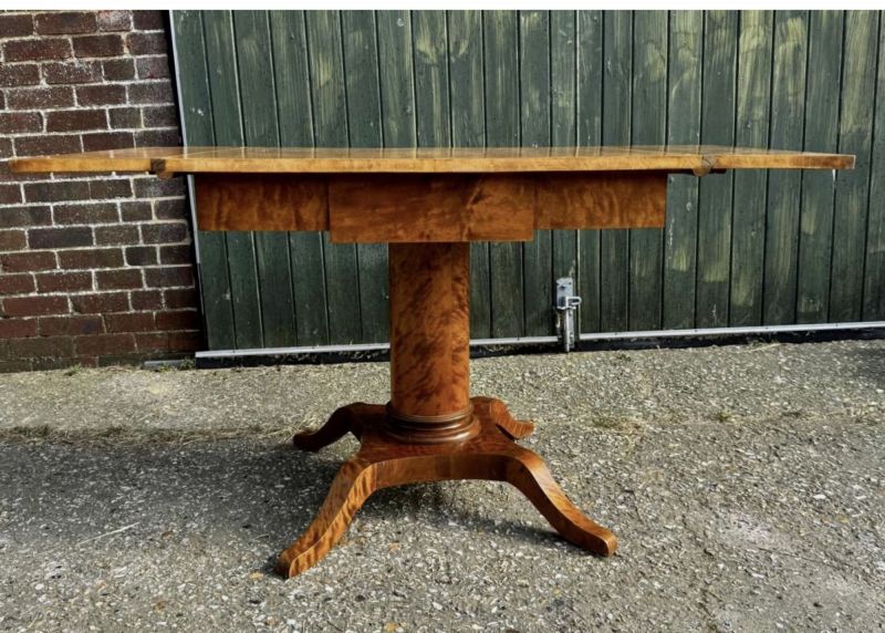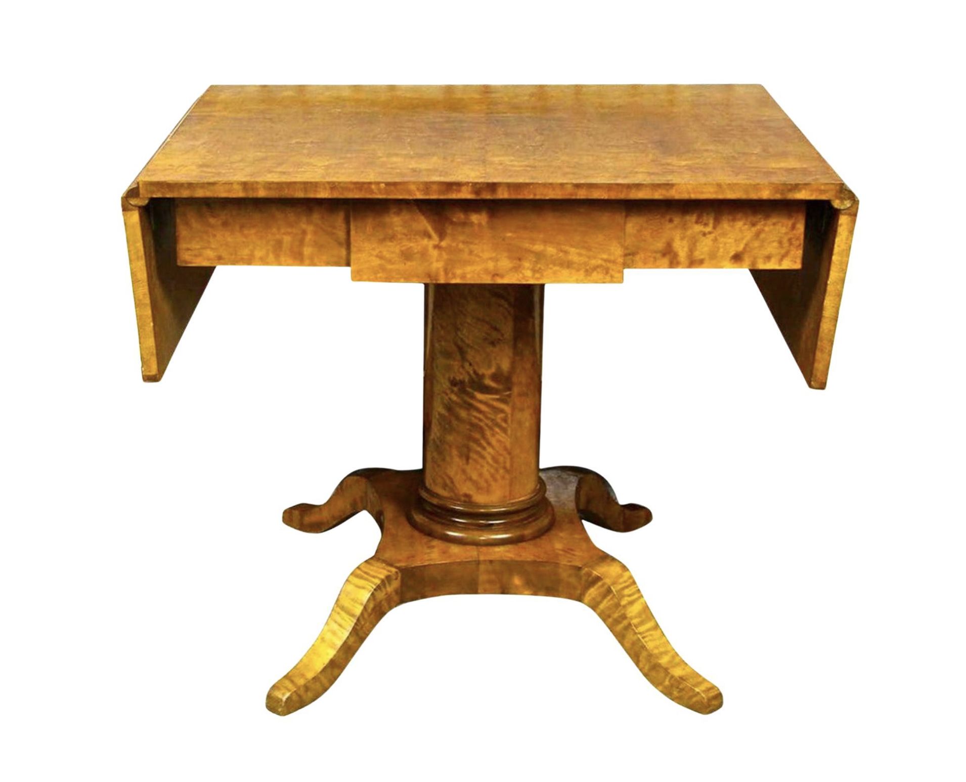 Swedish Biedermeier Drop-Leaf Pedestal Table Golden Birch Tiger Stripe 1800s