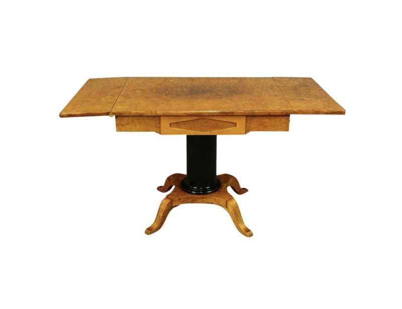 Swedish Biedermeier Pedestal Drop-Leaf Table Empire Golden Birch Ormolu Style A