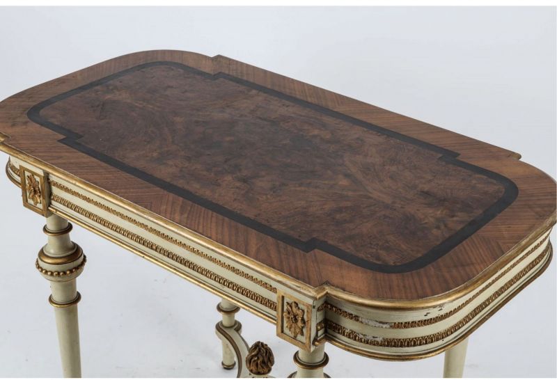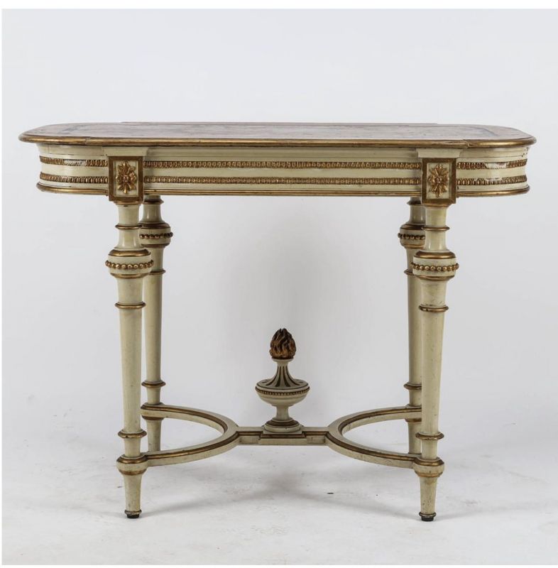 Swedish Gustavian Antique Table White Gold Carved Detail, 1800s