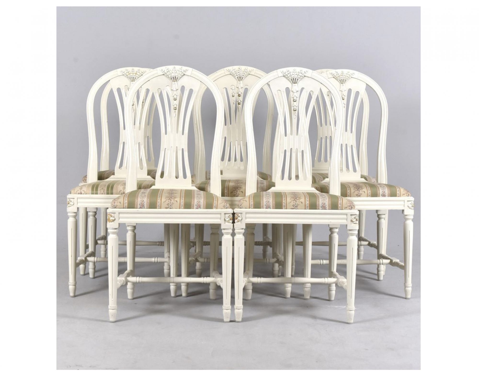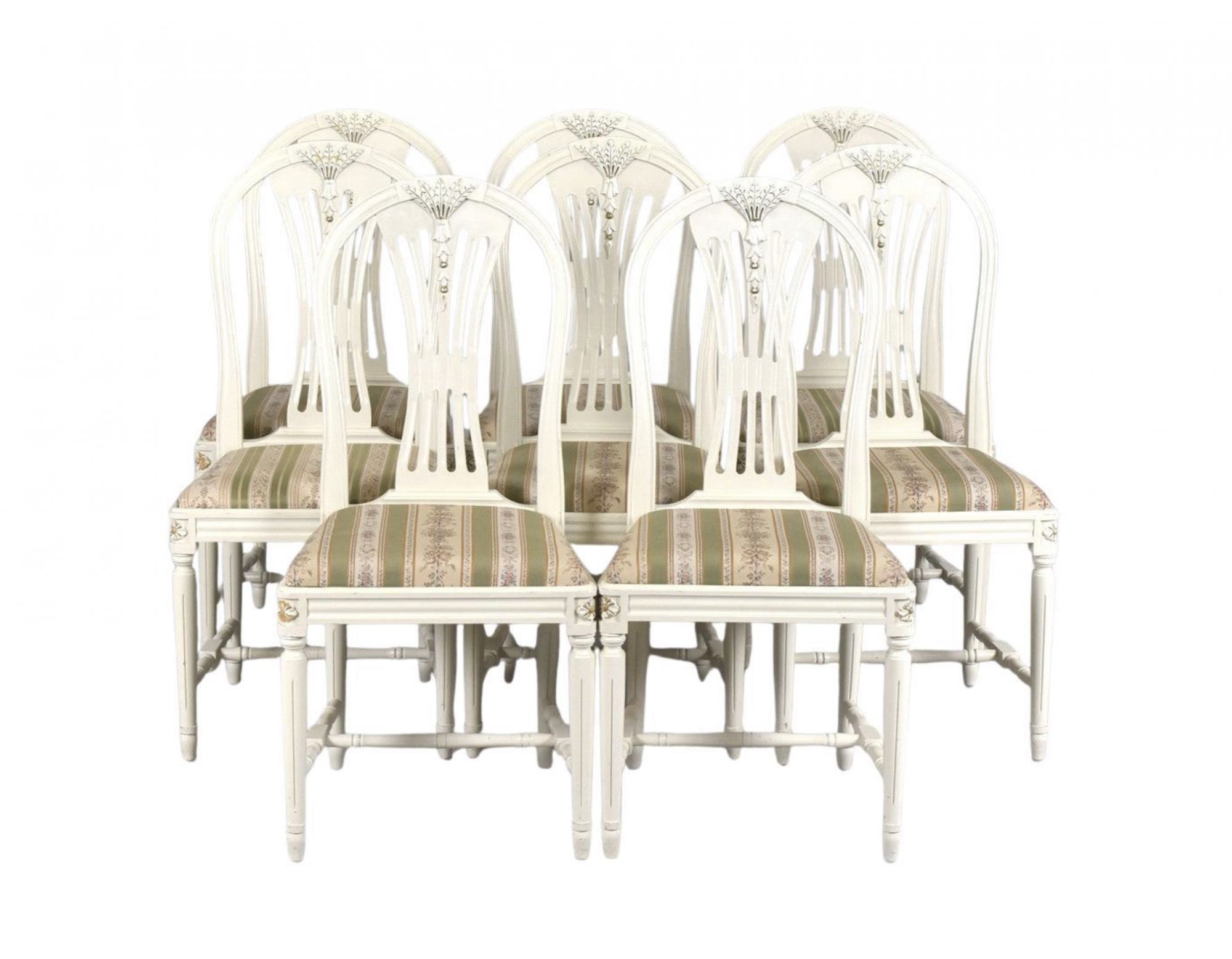 Swedish Gustavian Axet Dining Chairs Grey white Set of 8, 20th Century