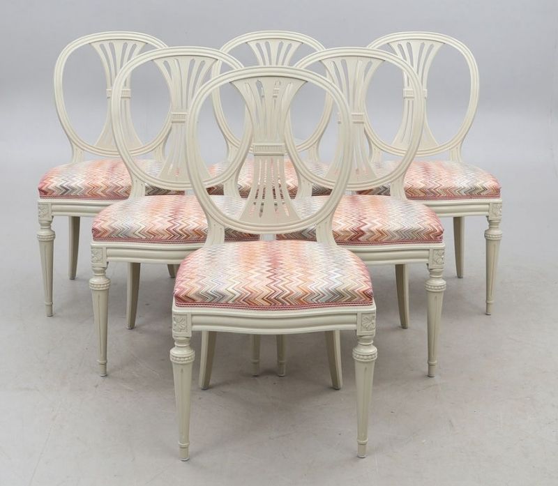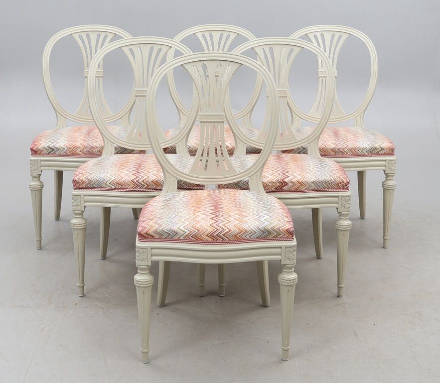 Swedish Gustavian Dining Chairs Grey Roundback Style Set of 6, Mid-20th Century