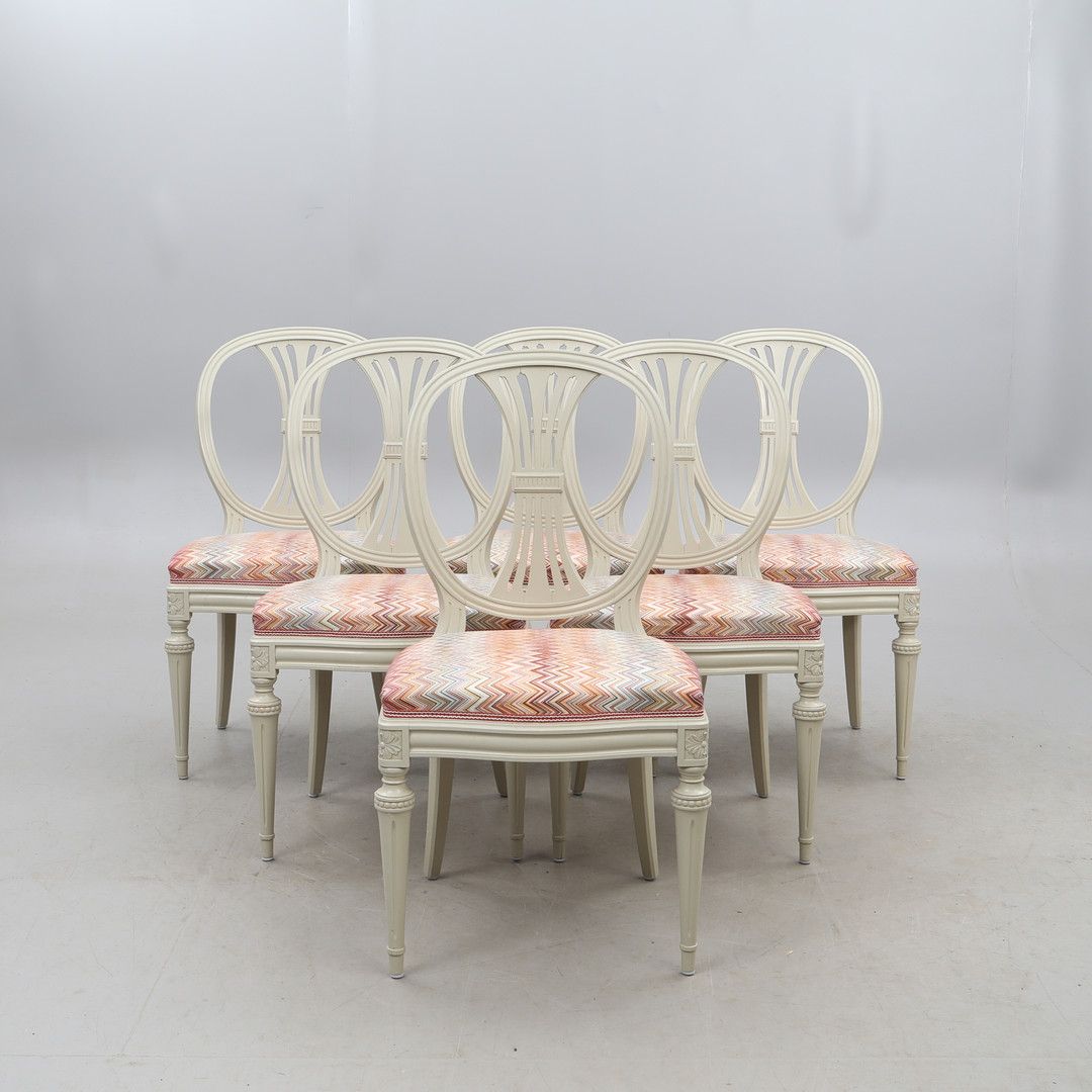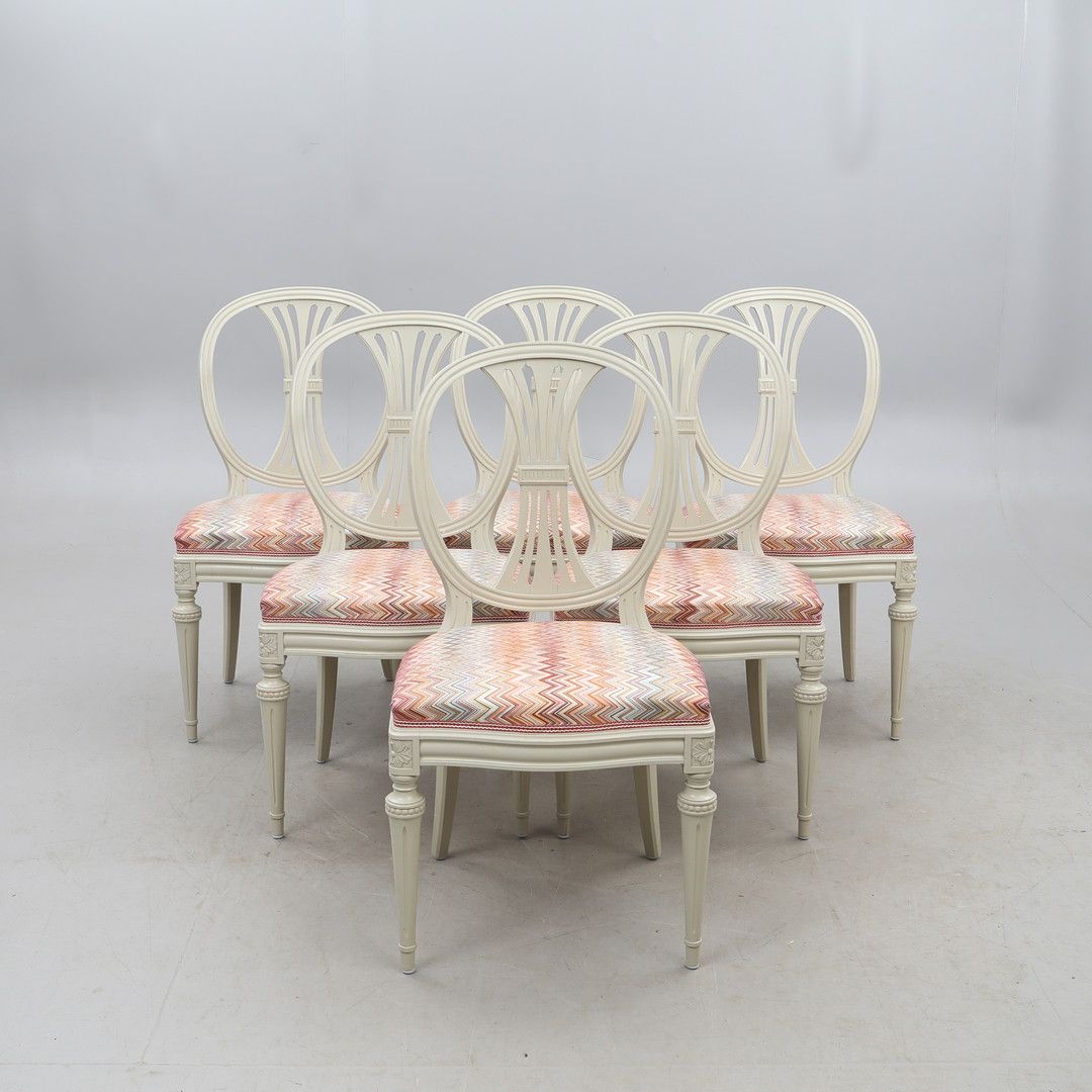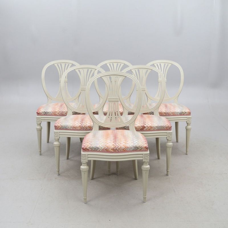 Swedish Gustavian Oval back Dining Chairs White Set of 6 mid C20th