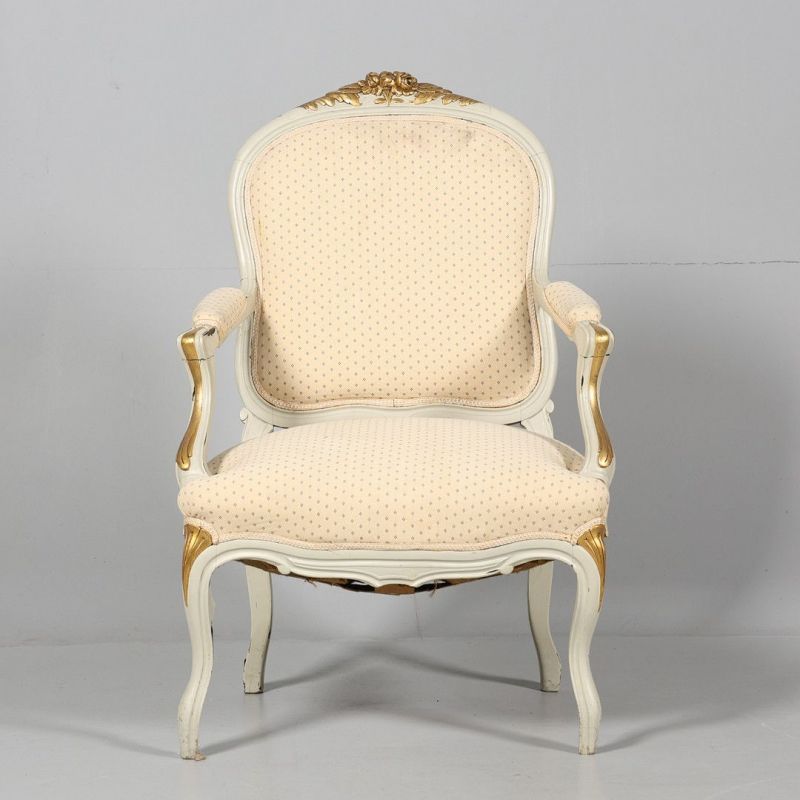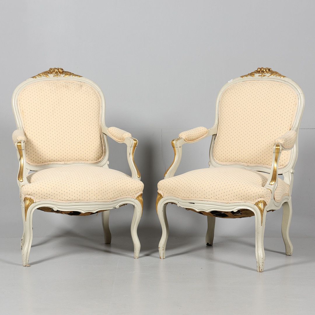 Swedish Gustavian Rococo Armchairs Pair White Color Gold Detail Early 1900s