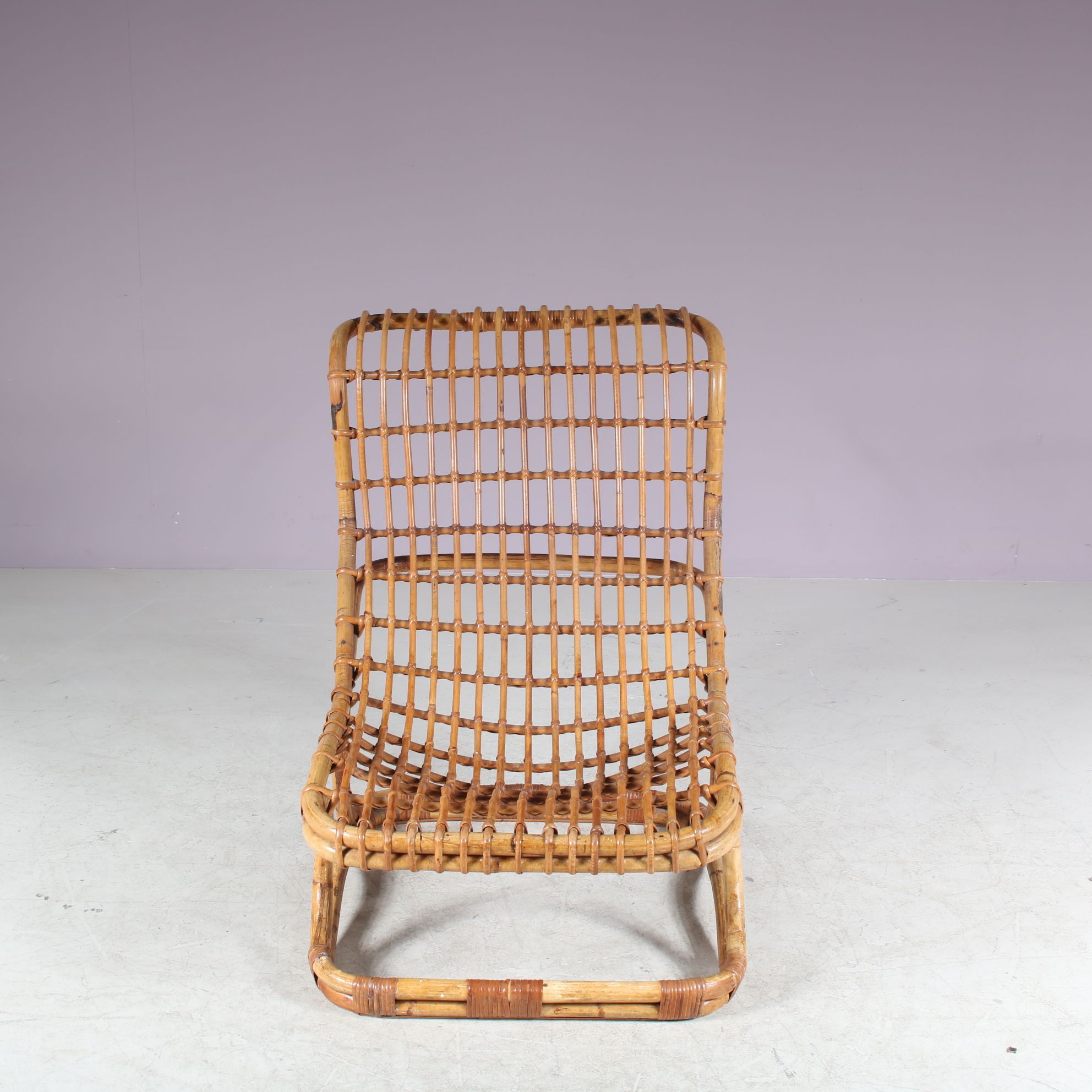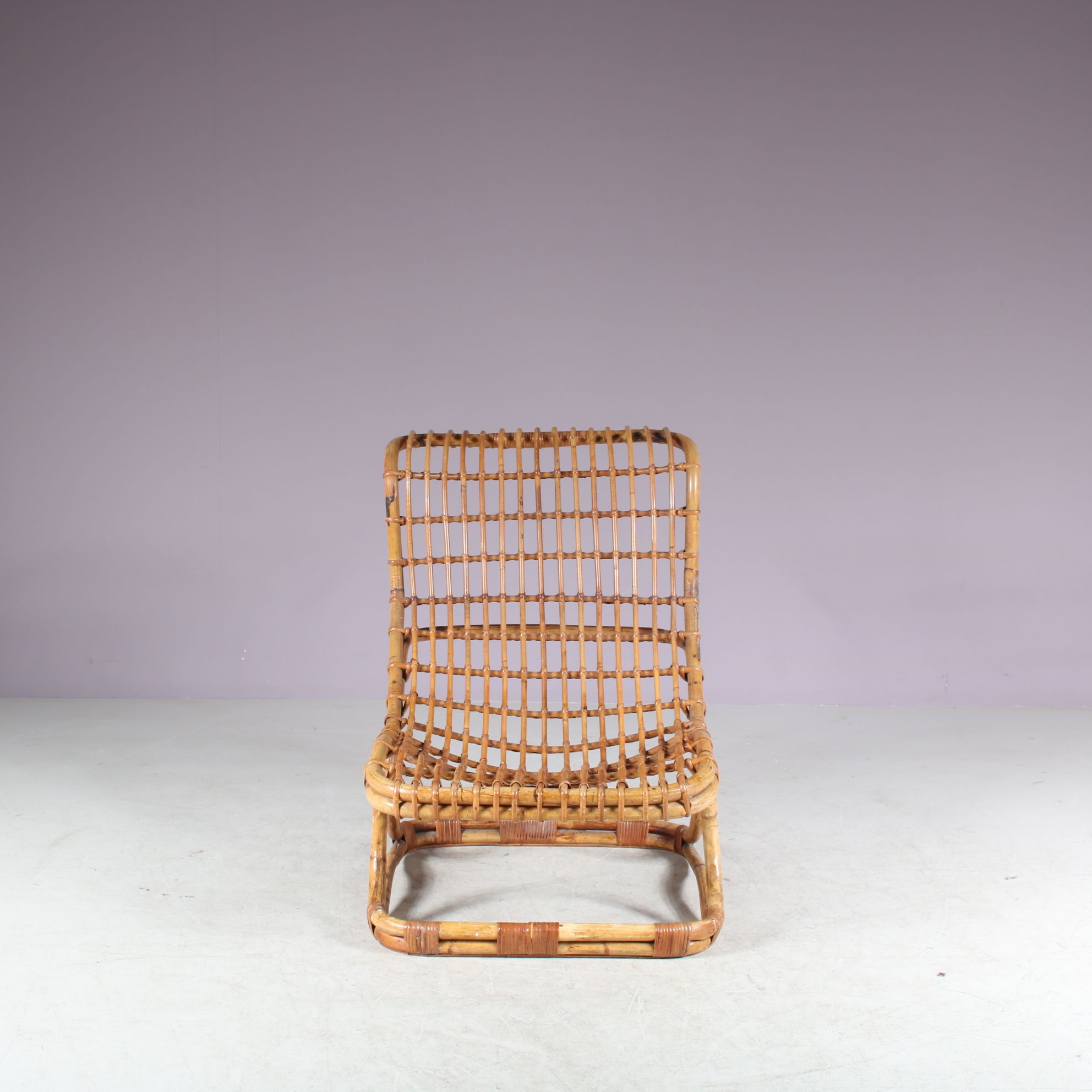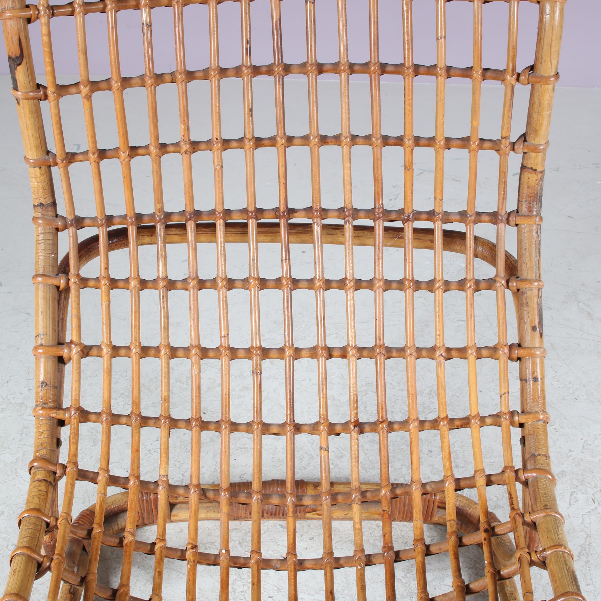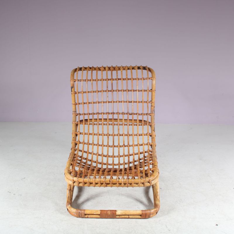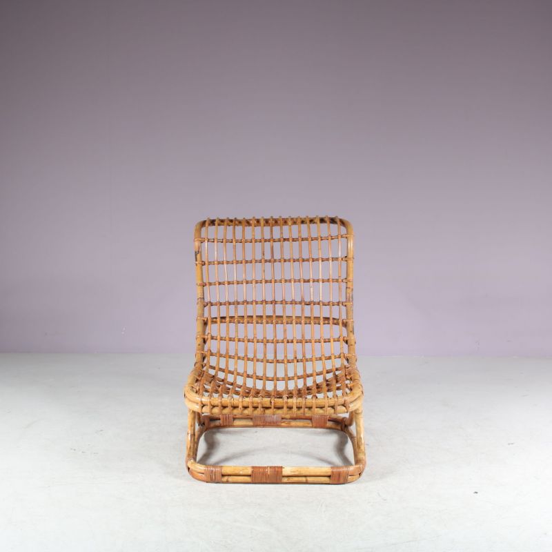 An eye-catching rattan lounge chair designed by Tito Agnoli, manufactured in Italy in the 1950s.