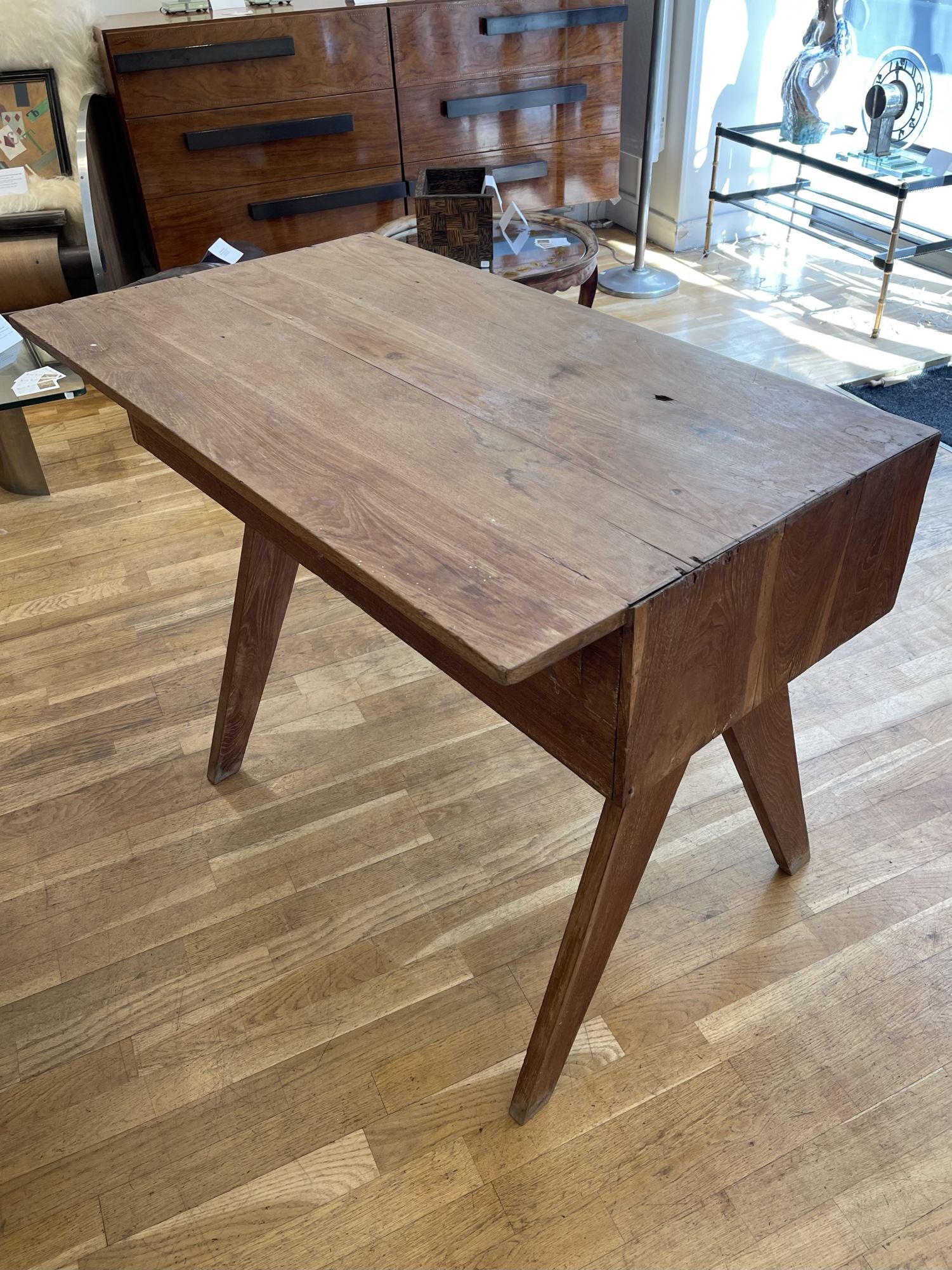 Varnished teak desk.