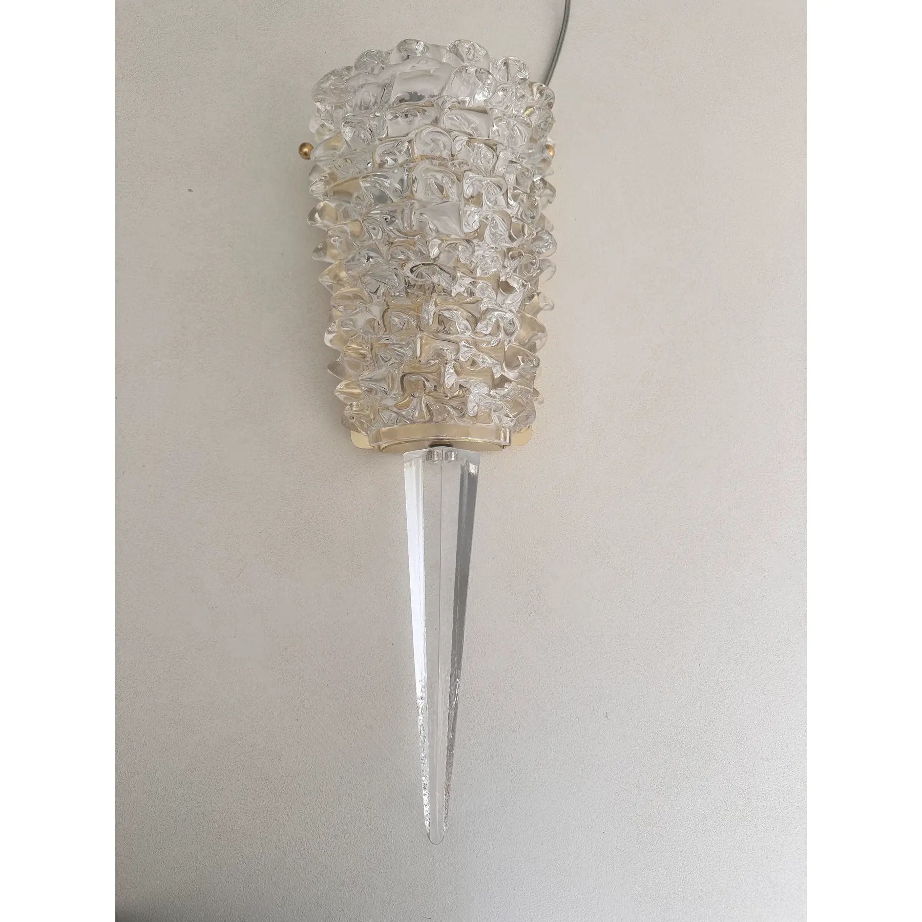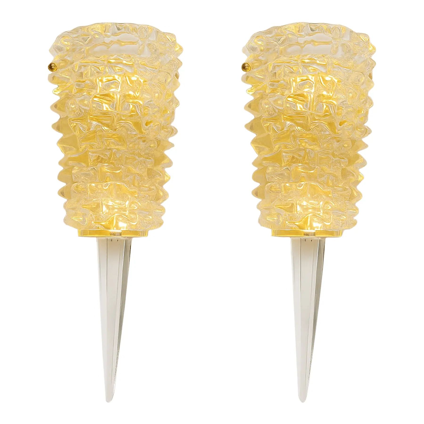 A Pair Barovier Style Art Deco Rostrato Clear Italian Murano Glass Wall Sconces