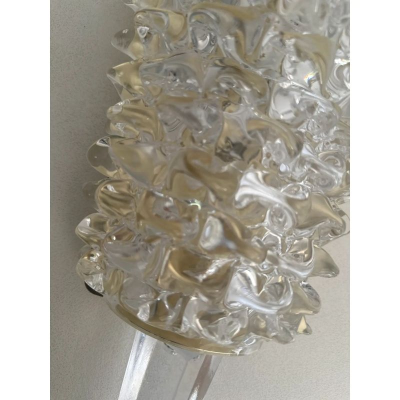 Elegant pair of Italian wall sconces crafted in clear rostrato Murano glass, a technique originally developed by Barovier and renowned for its light-reflecting texture. The brass structure preserves its natural patina, while the electrical components have been fully restored for 110 with E12 bulbs in some weeks