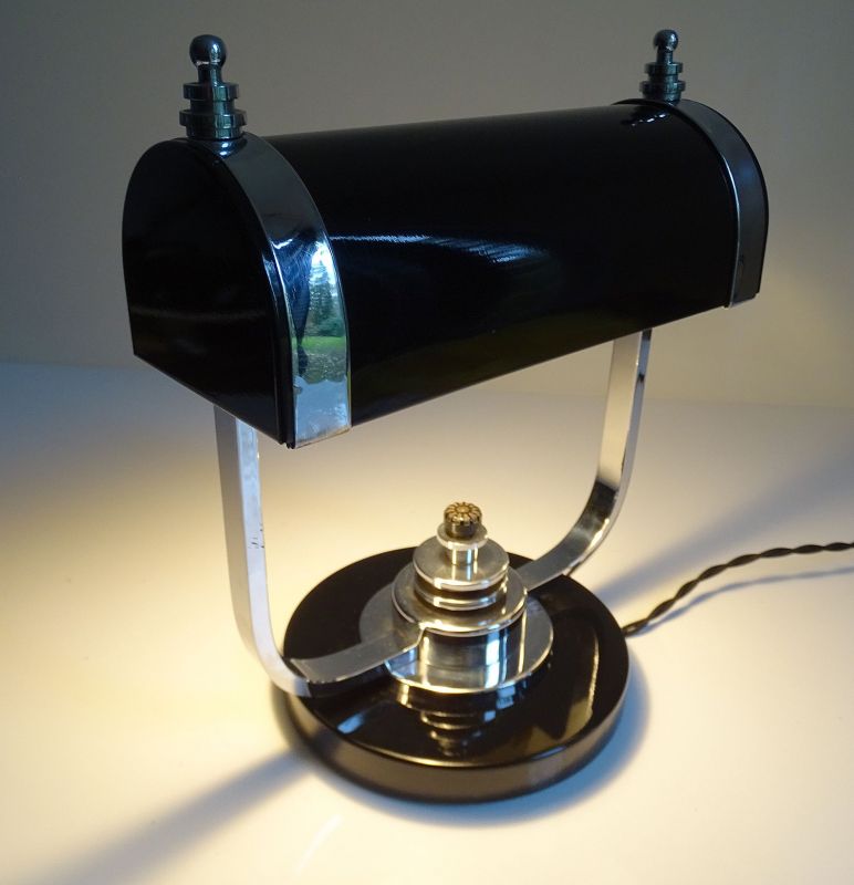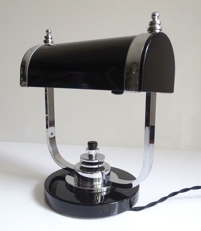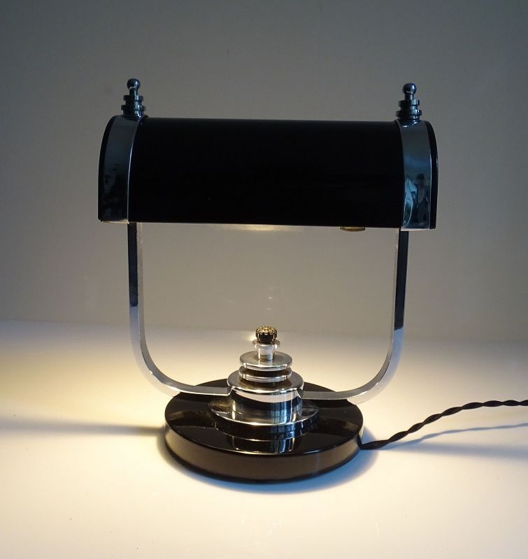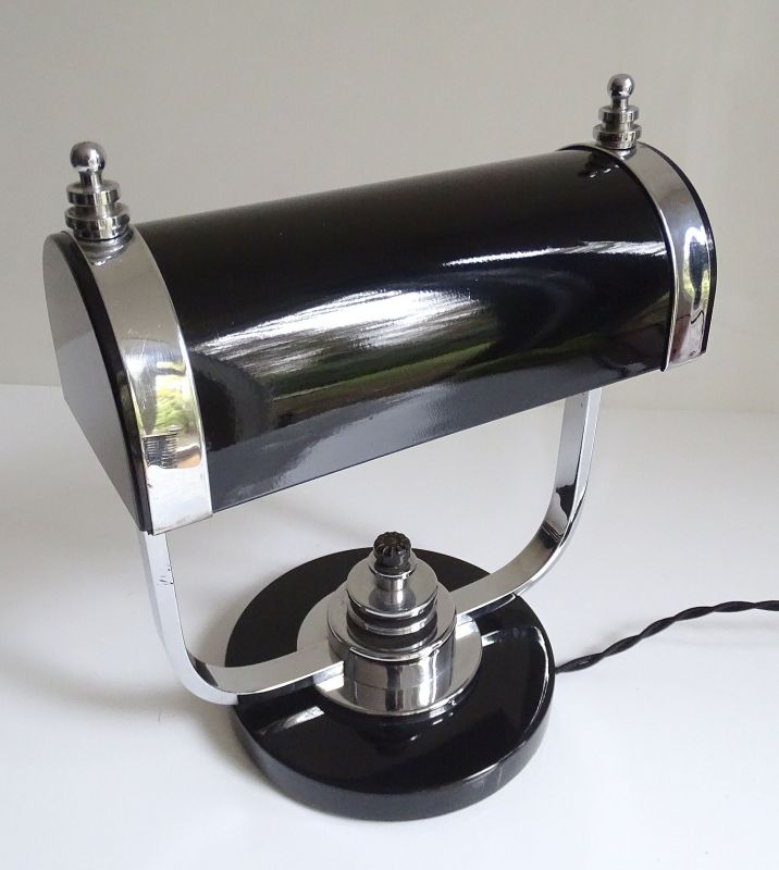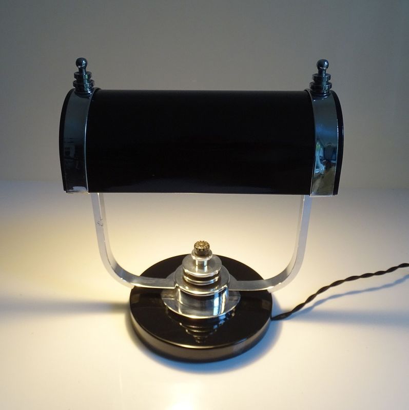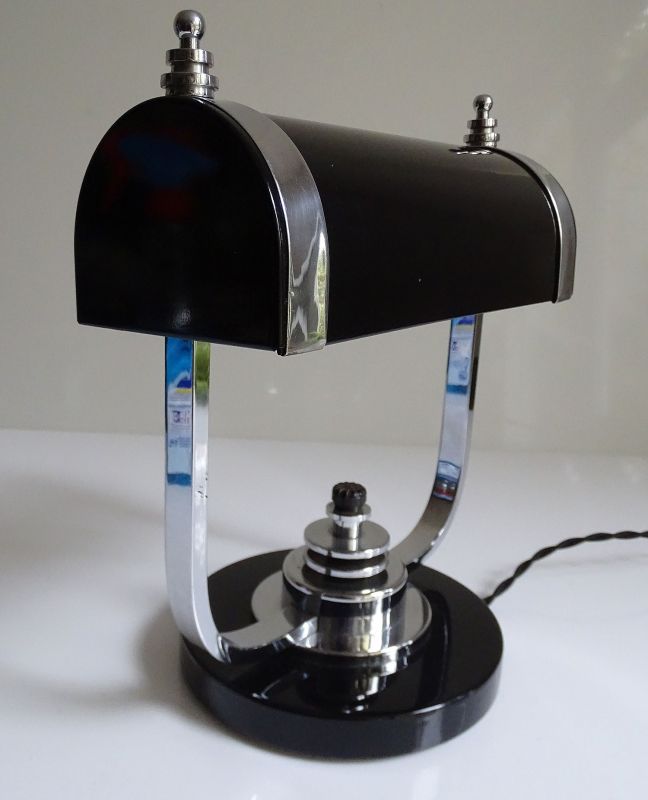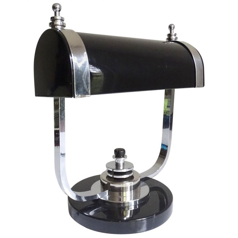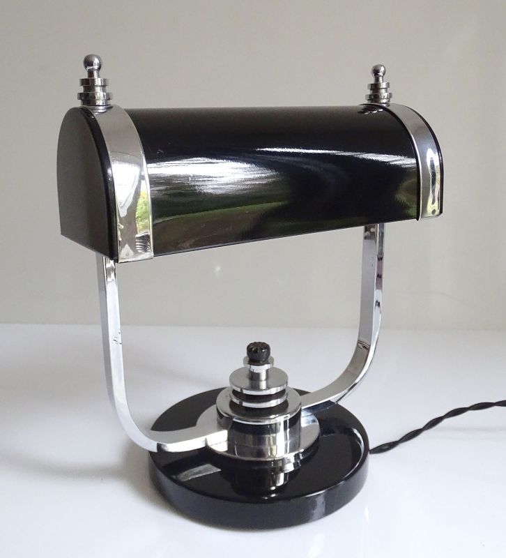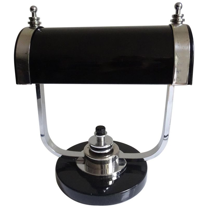 Art Deco Banker Desk Lamp, 1930s Black Chrome Machine Age Design