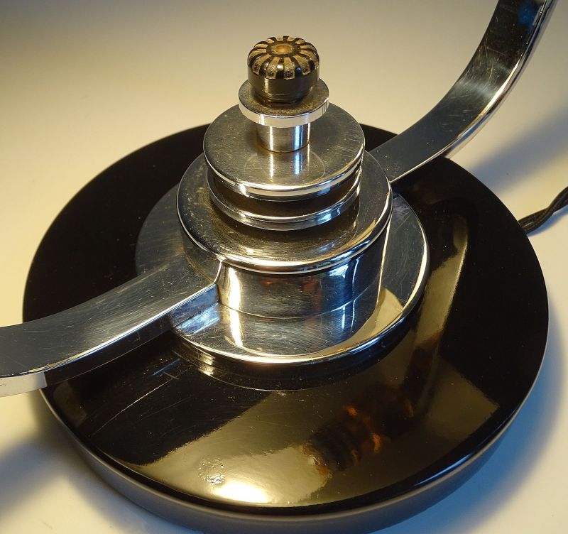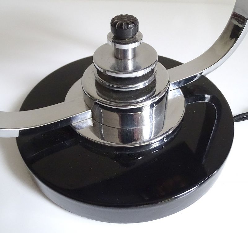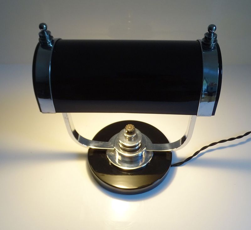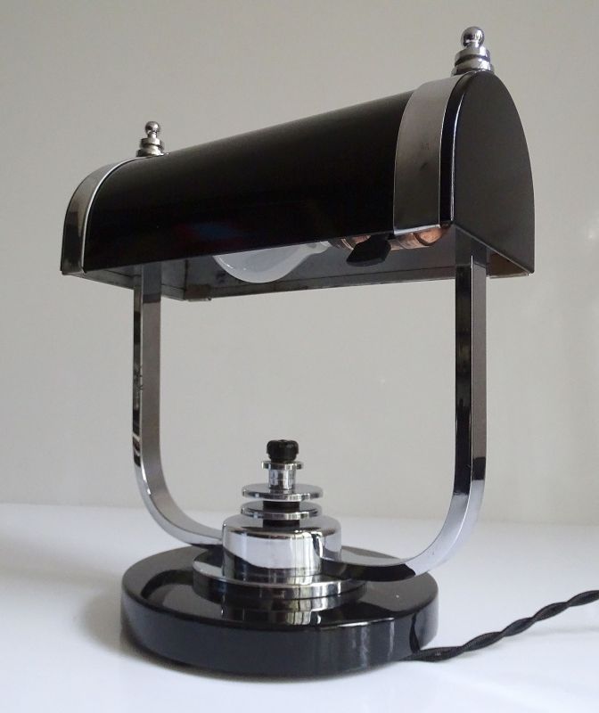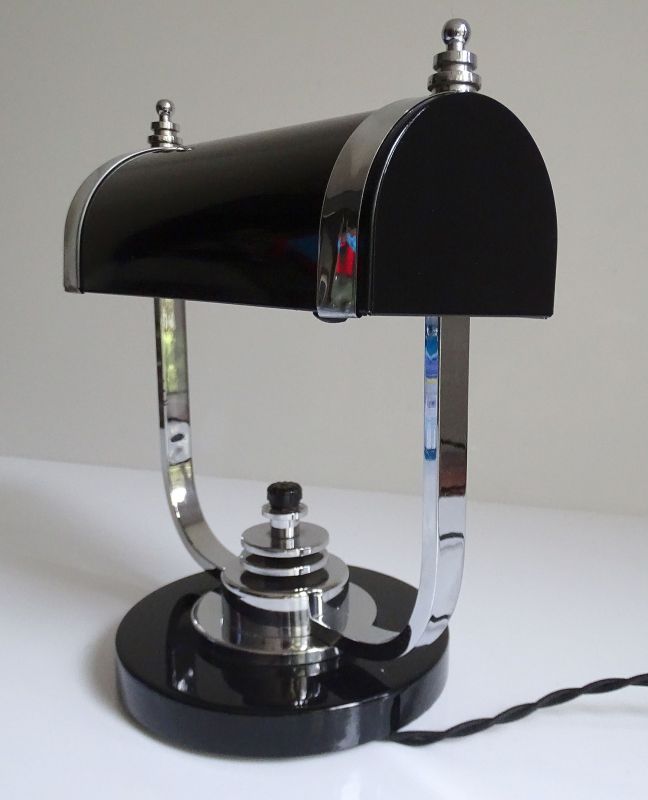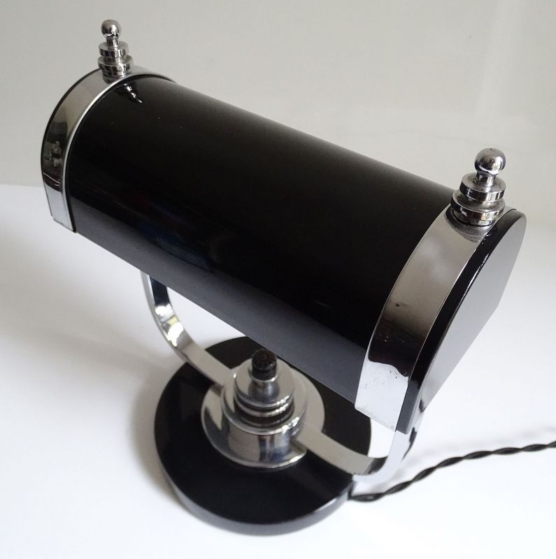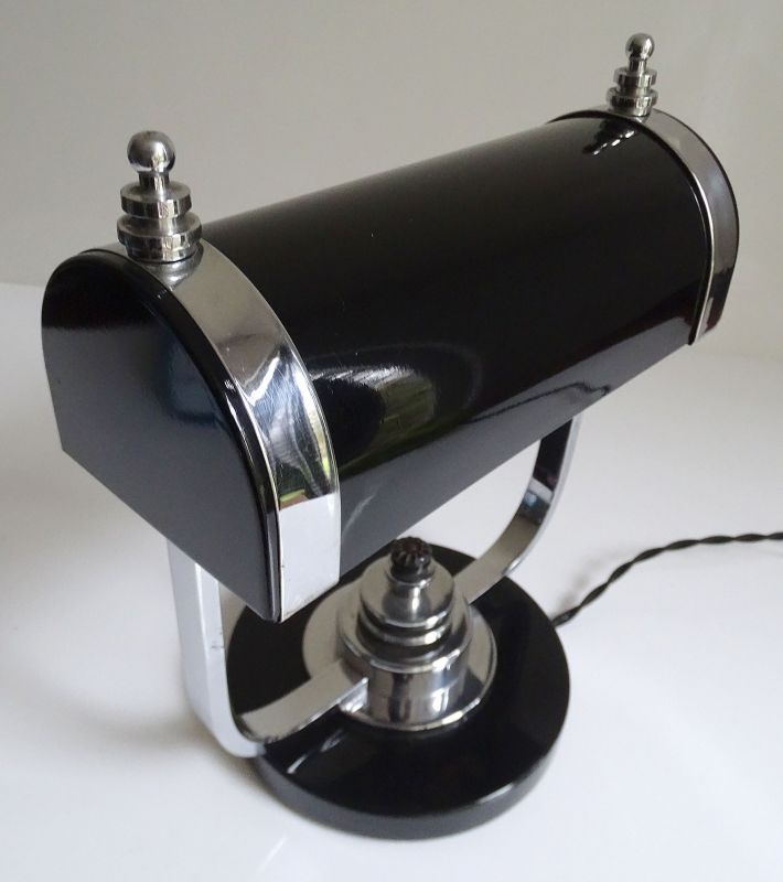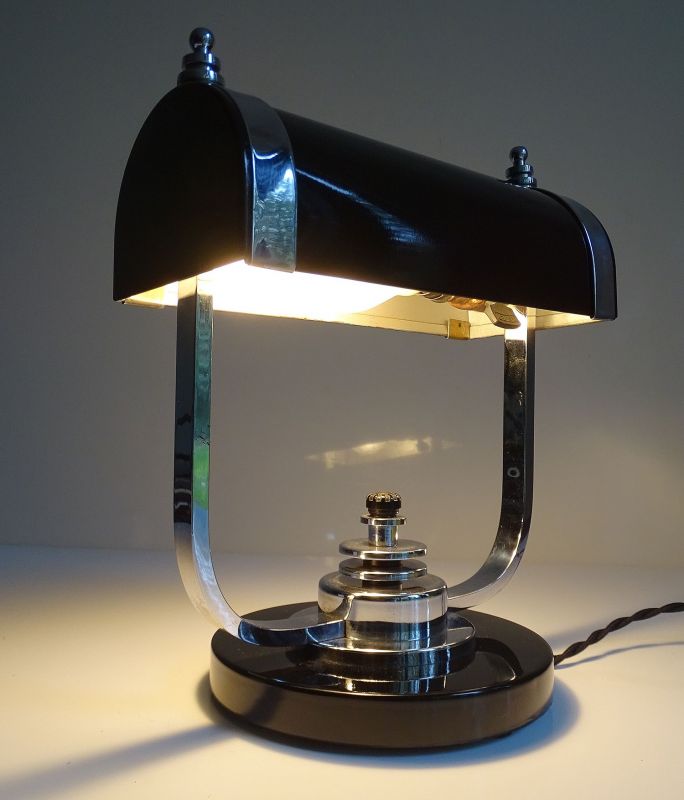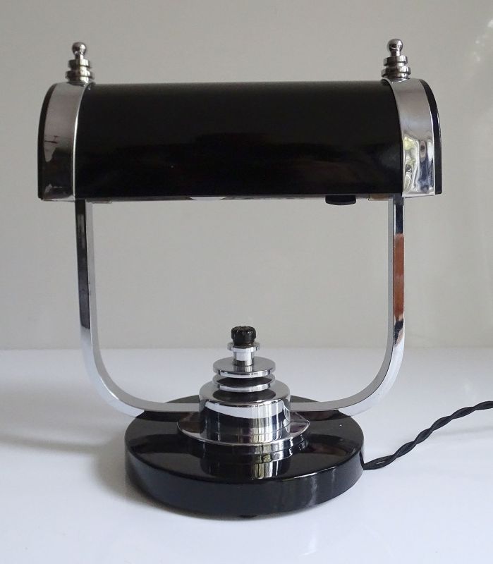 Art Deco Banker Desk Lamp, 1930s Black Chrome Machine Age Design