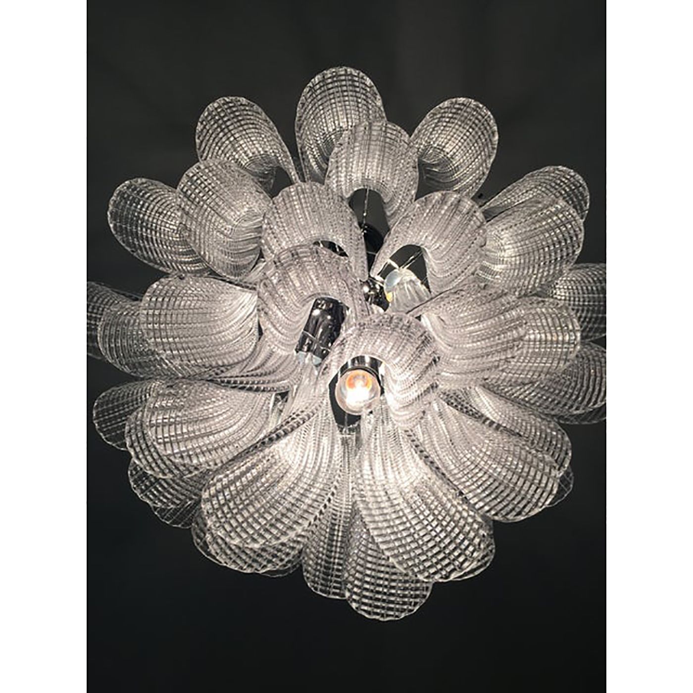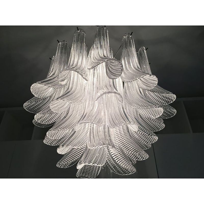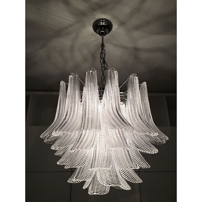 Clear “Selle Seghettate” Murano Glass Venini Style Chandelier