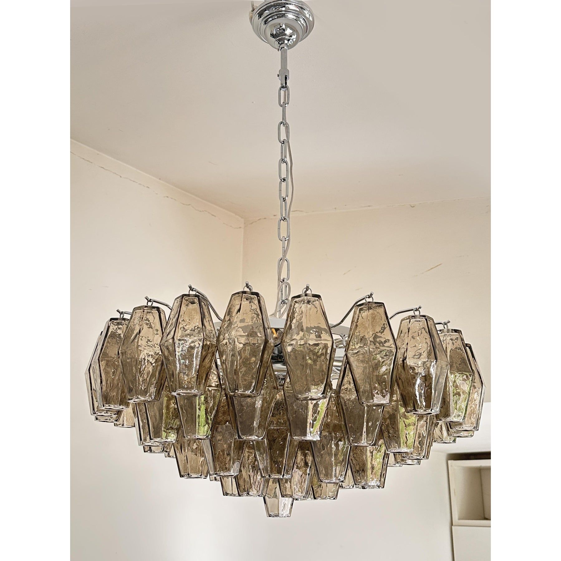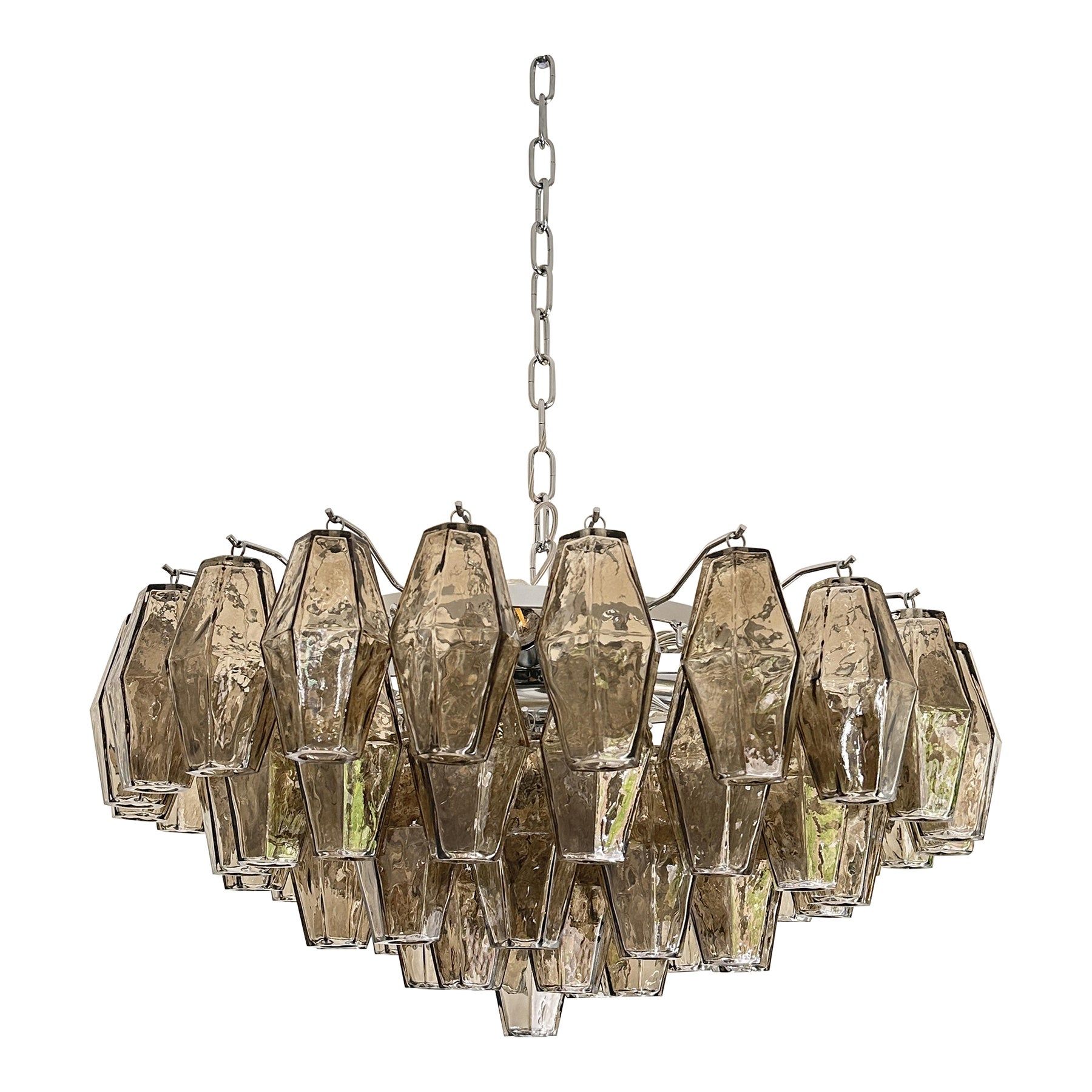 Contemporary Chandelier With Fume’ “Poliedri” Murano Glass in Venini Style