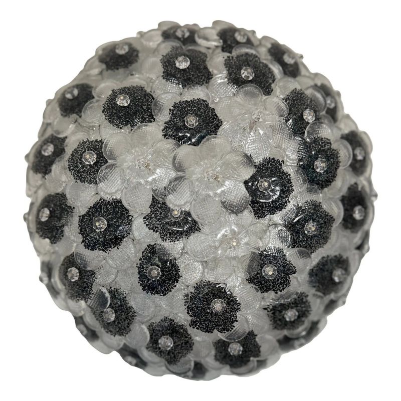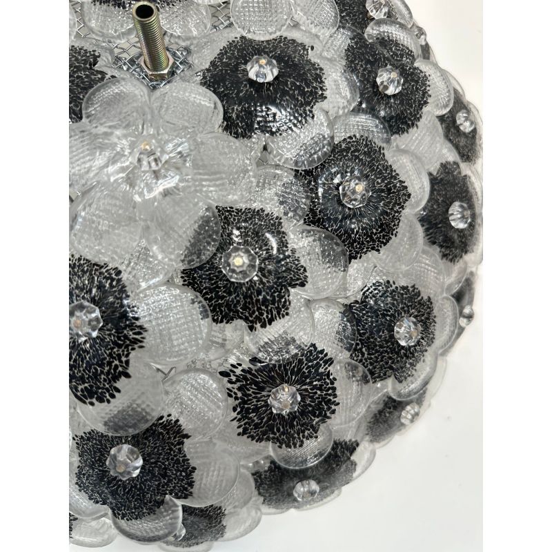 Contemporary Clear and Black Flowers Murano Glass Flush Mount