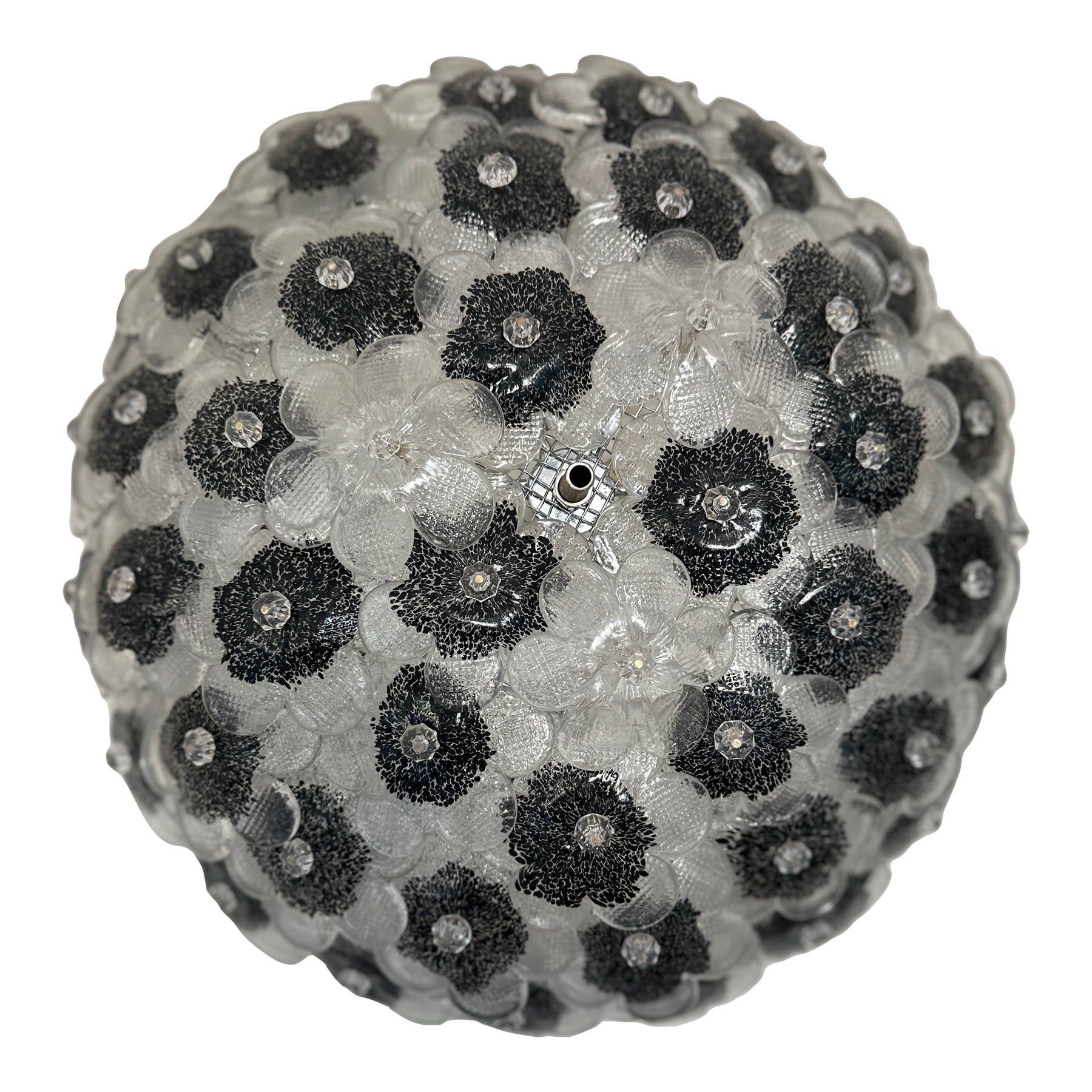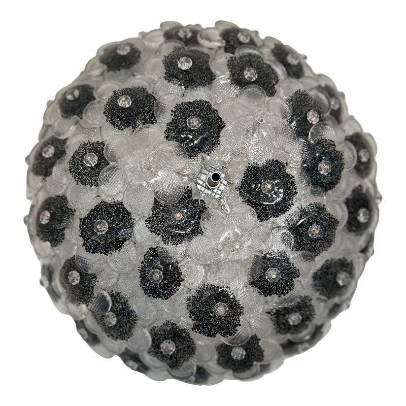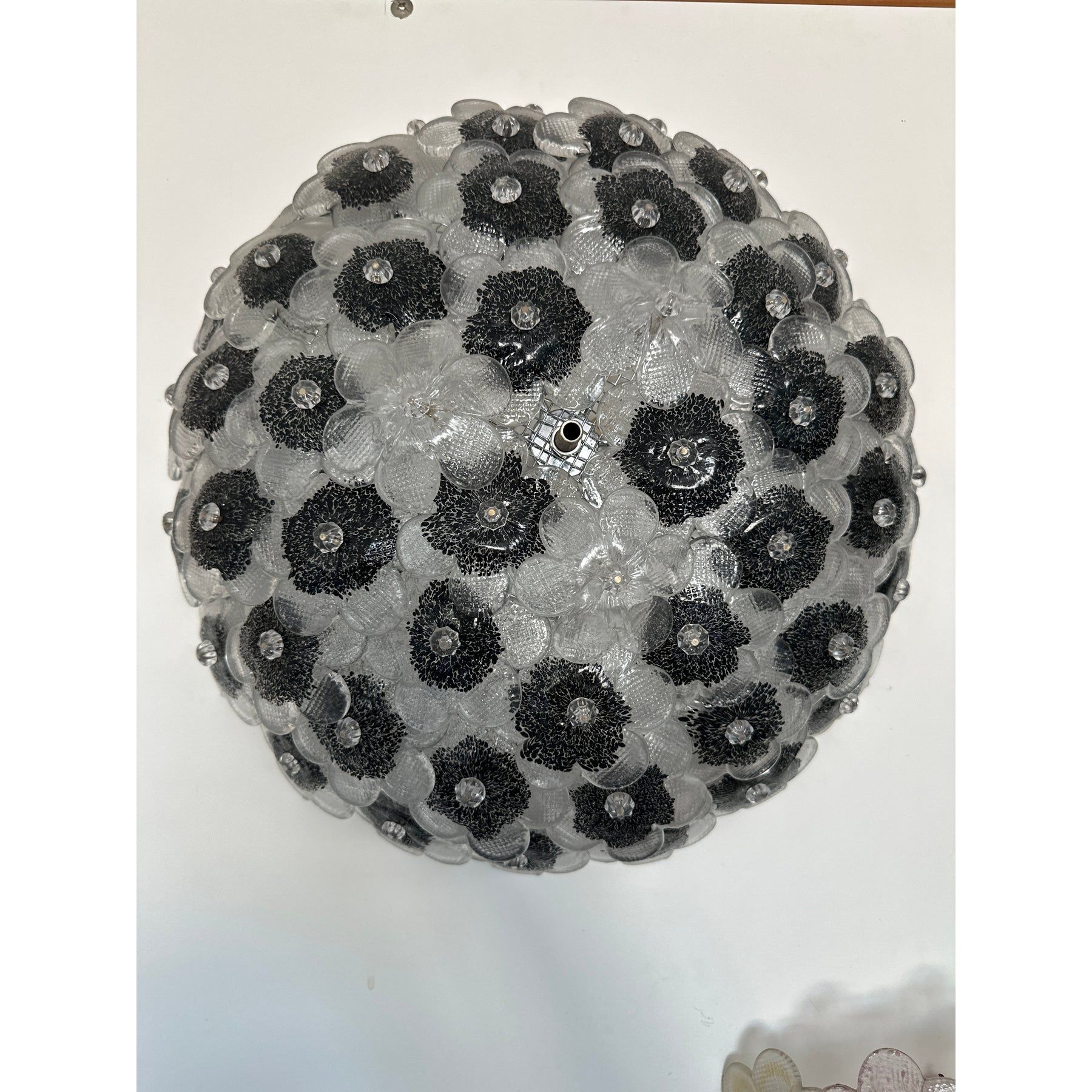 Contemporary Clear and Black Flowers Murano Glass Flush Mount