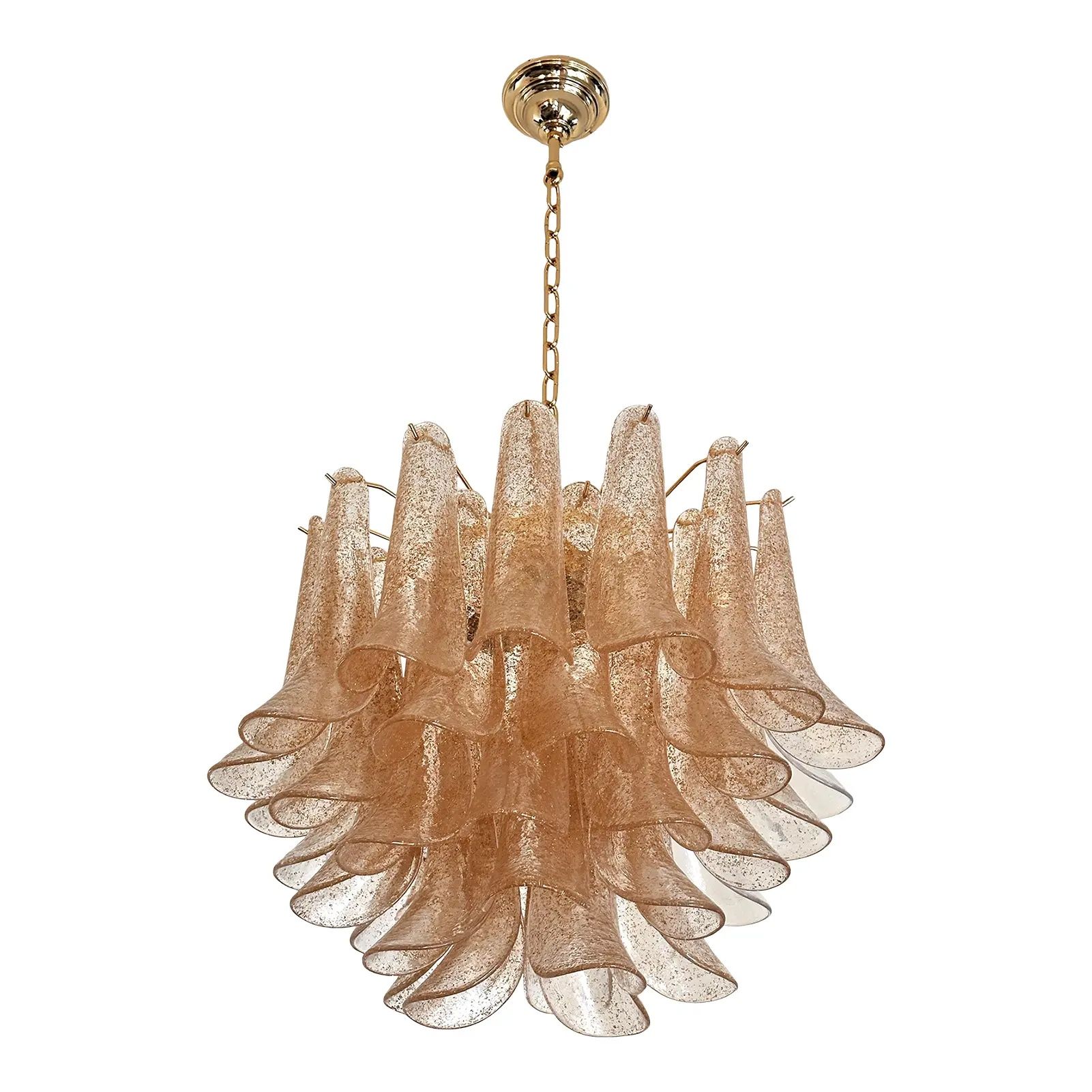 Contemporary Clear and Gold “Petali-Selle” Murano Glass Chandelier in Mazzega Style
