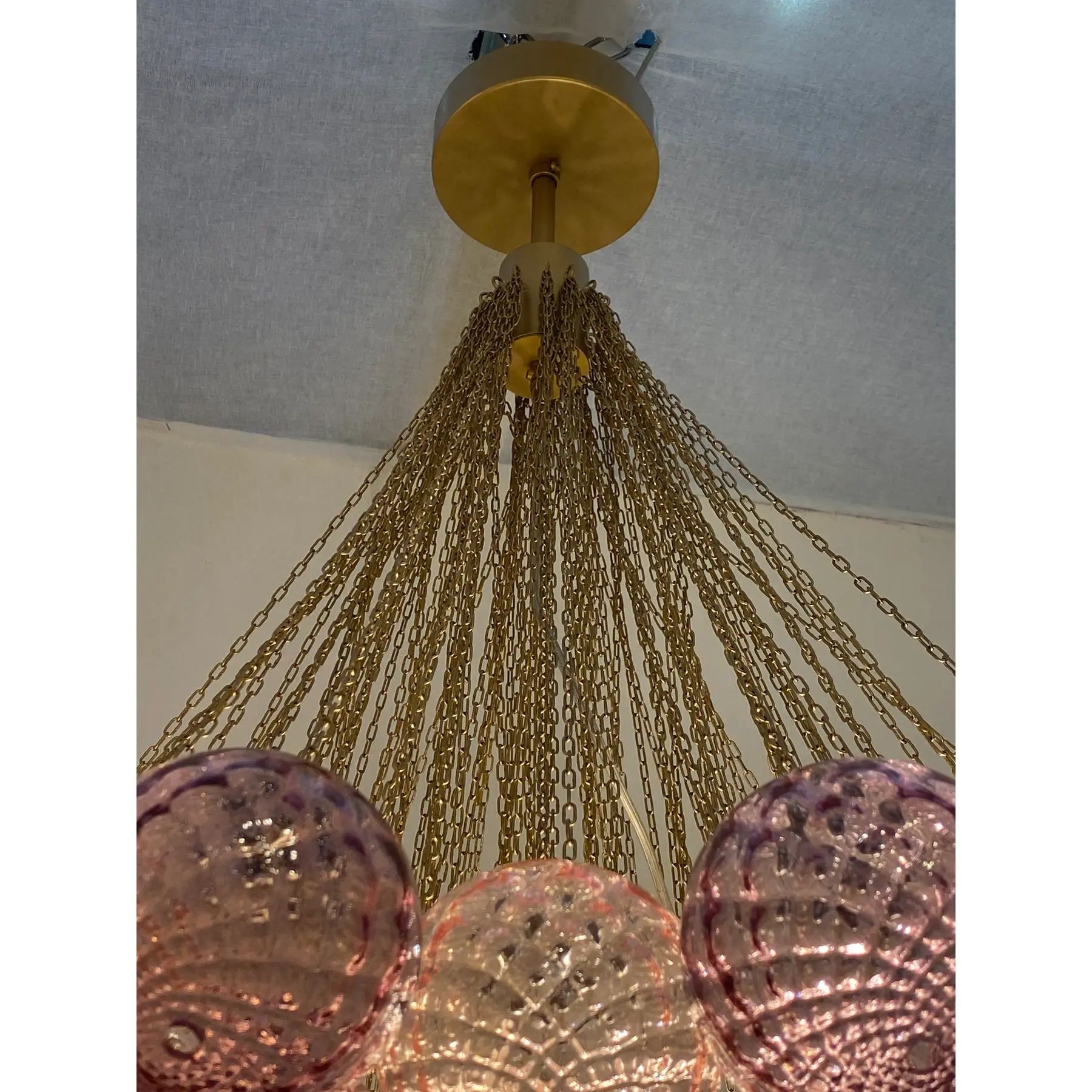 Impressive Scenographic Ametista and pink“ballotton” spheres Murano Glass Chandelier.