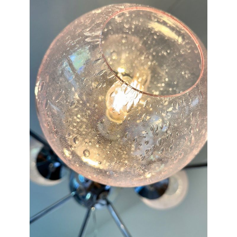 Contemporary Italian Chromed Sputnik Chandelier in Pink "Pulegoso" Murano Glass