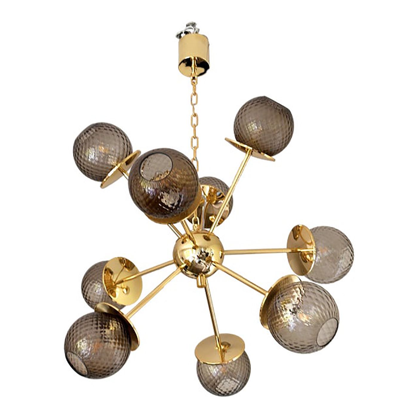 Contemporary Italian Gold Chandelier Sputnik in Style Murano Glass Smoked "Balloton"