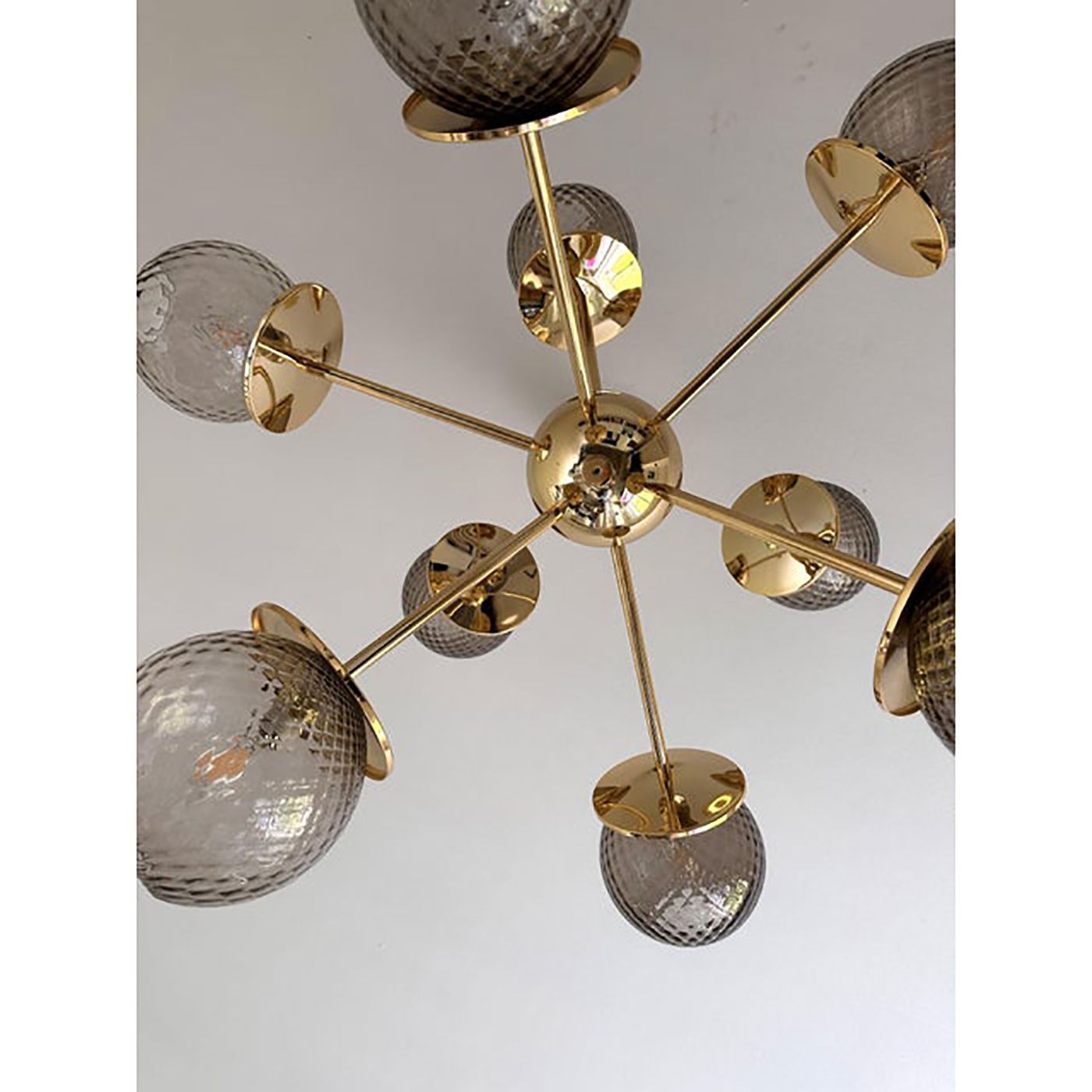 Luxury sputnik chandelier with smoked fumè spheres in Murano glass ."ballotton" is a traditional working of Murano glass.