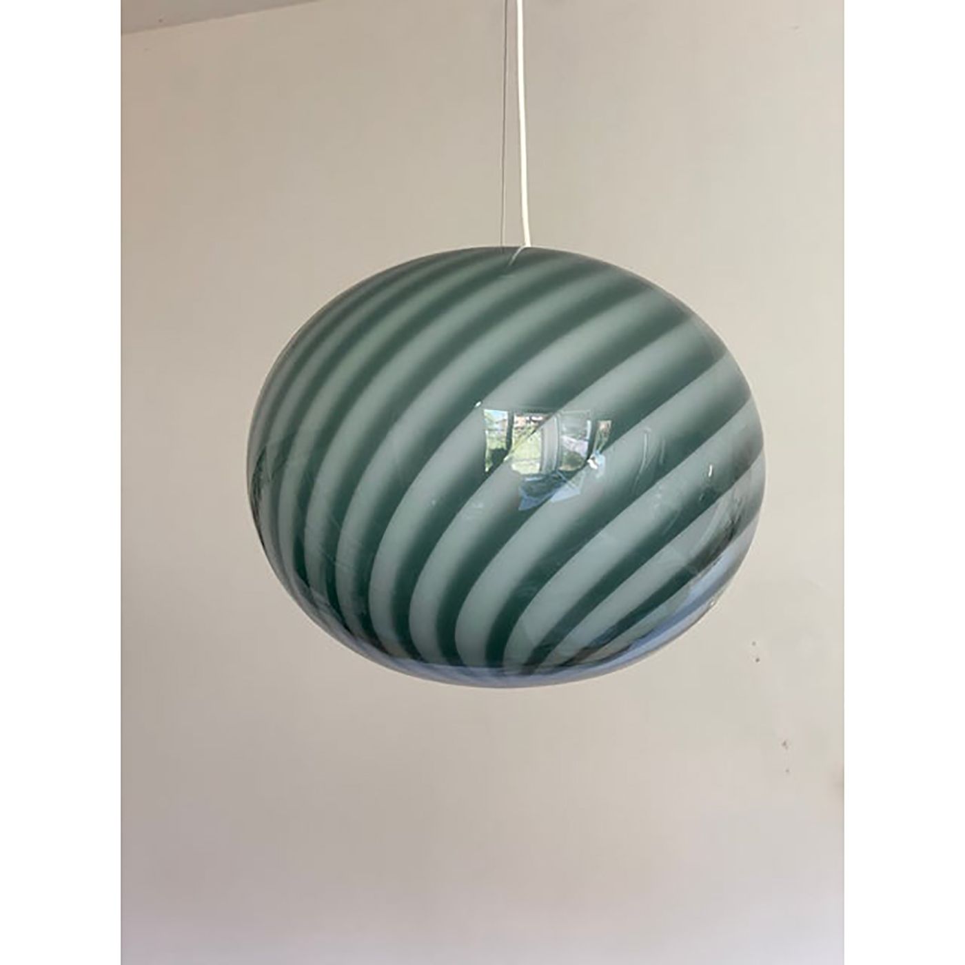 Contemporary green and milky-white oval in Murano Glass Swirl Venini style