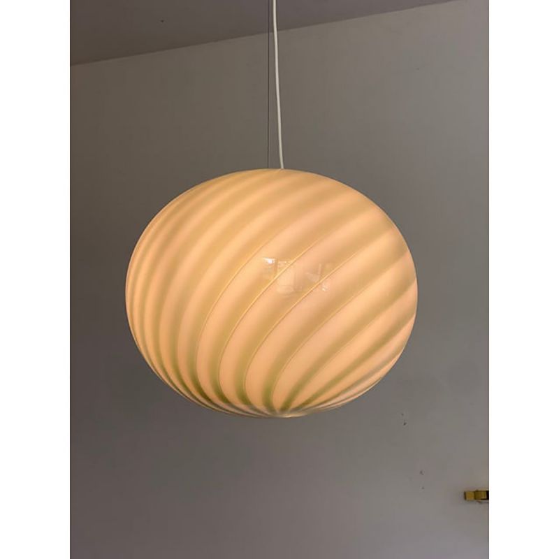 Very High Italian craftsmanship. Venetian swirl make up this scenographic suspension lamp. These jewels melted together are skillfully blown by skilled Murano masters,