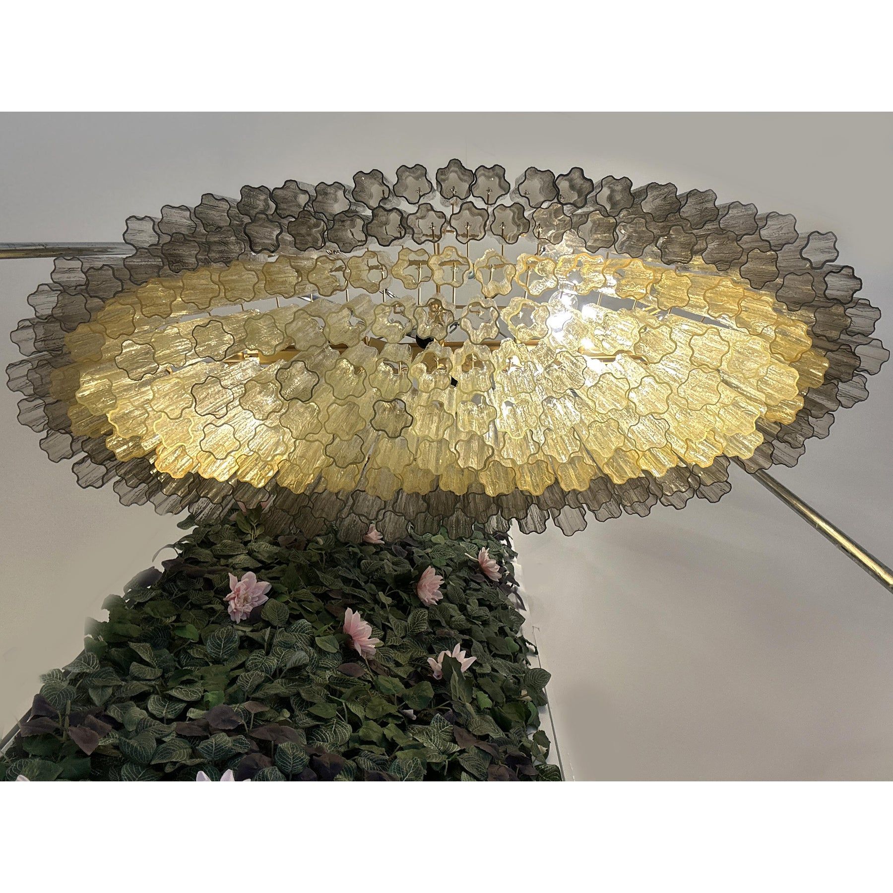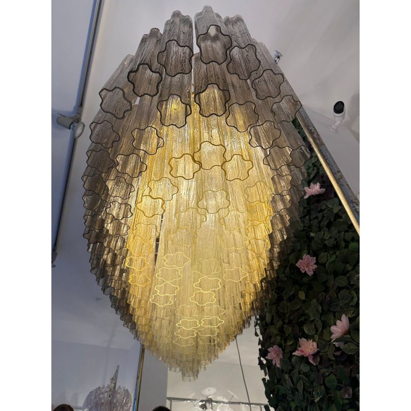 Five levels of "Tronchi Murano galss in old crystal,champagne, amber and fumè color.