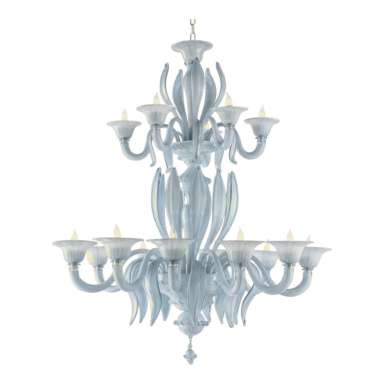 Contemporary Mid-Century Modern Venetian Azure Style Murano Glass Chandelier With Leaves