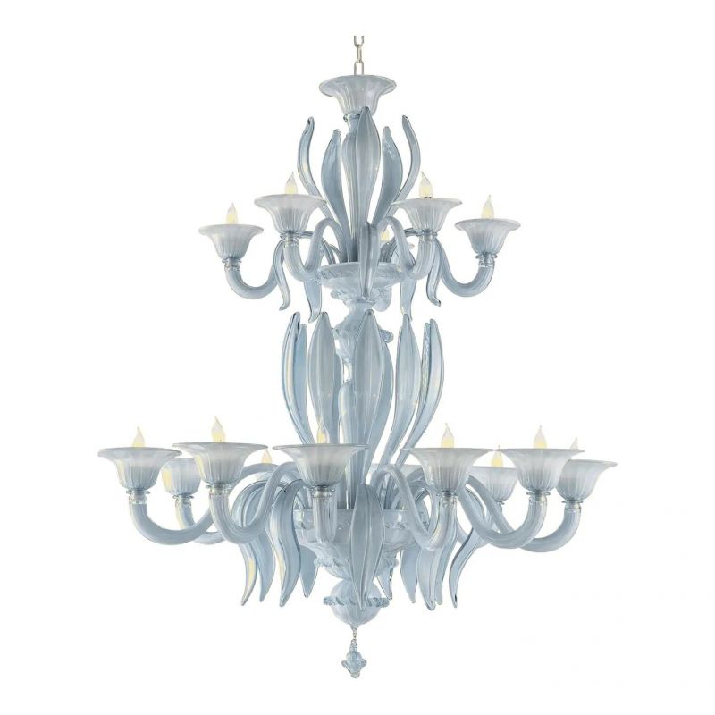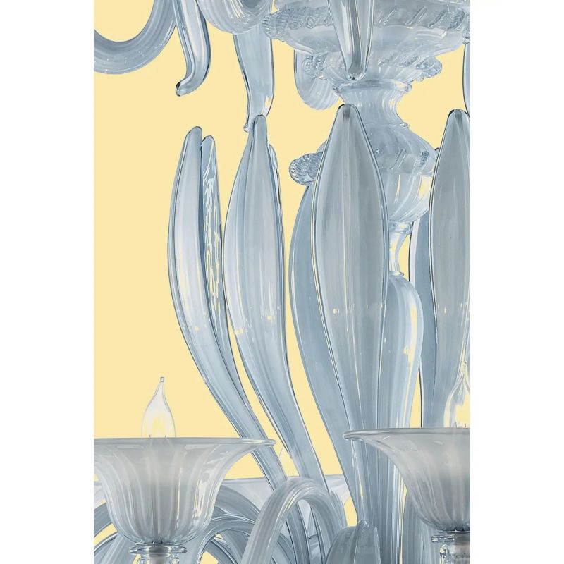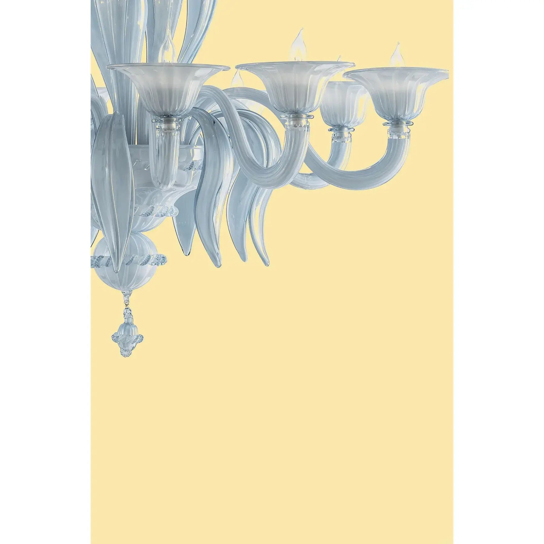 Particular chandelier made in azure light-blue Murano glass. Elegant for modern and classicl interiors.