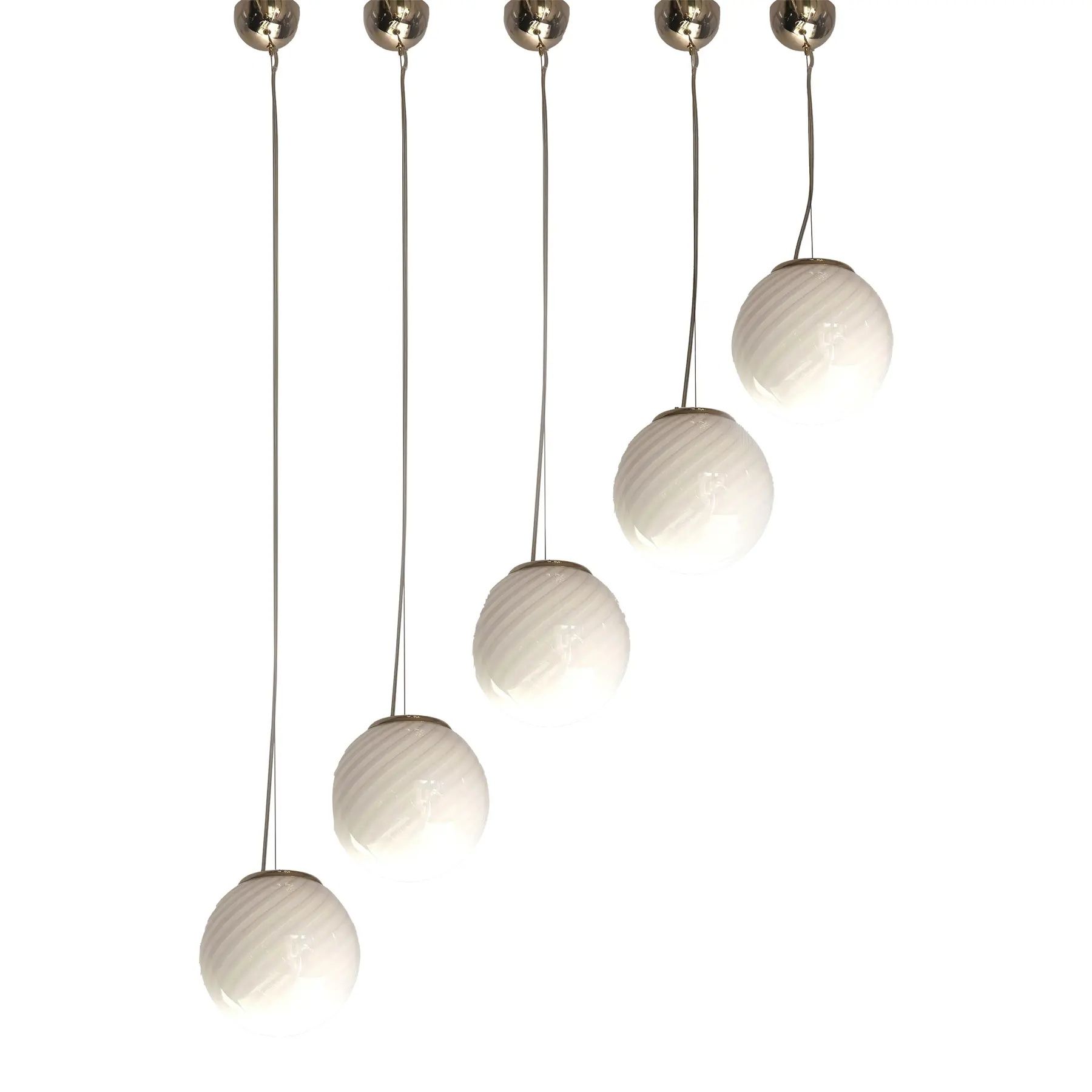 Contemporary Milky-White Sphres Murano Glass Pendant - Set of 5