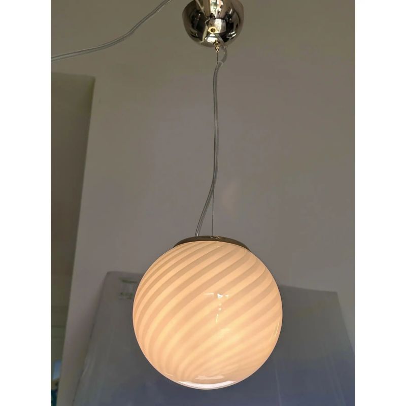 Set of three milky-white "Rigadin Ritorto" Murano glass spheres.