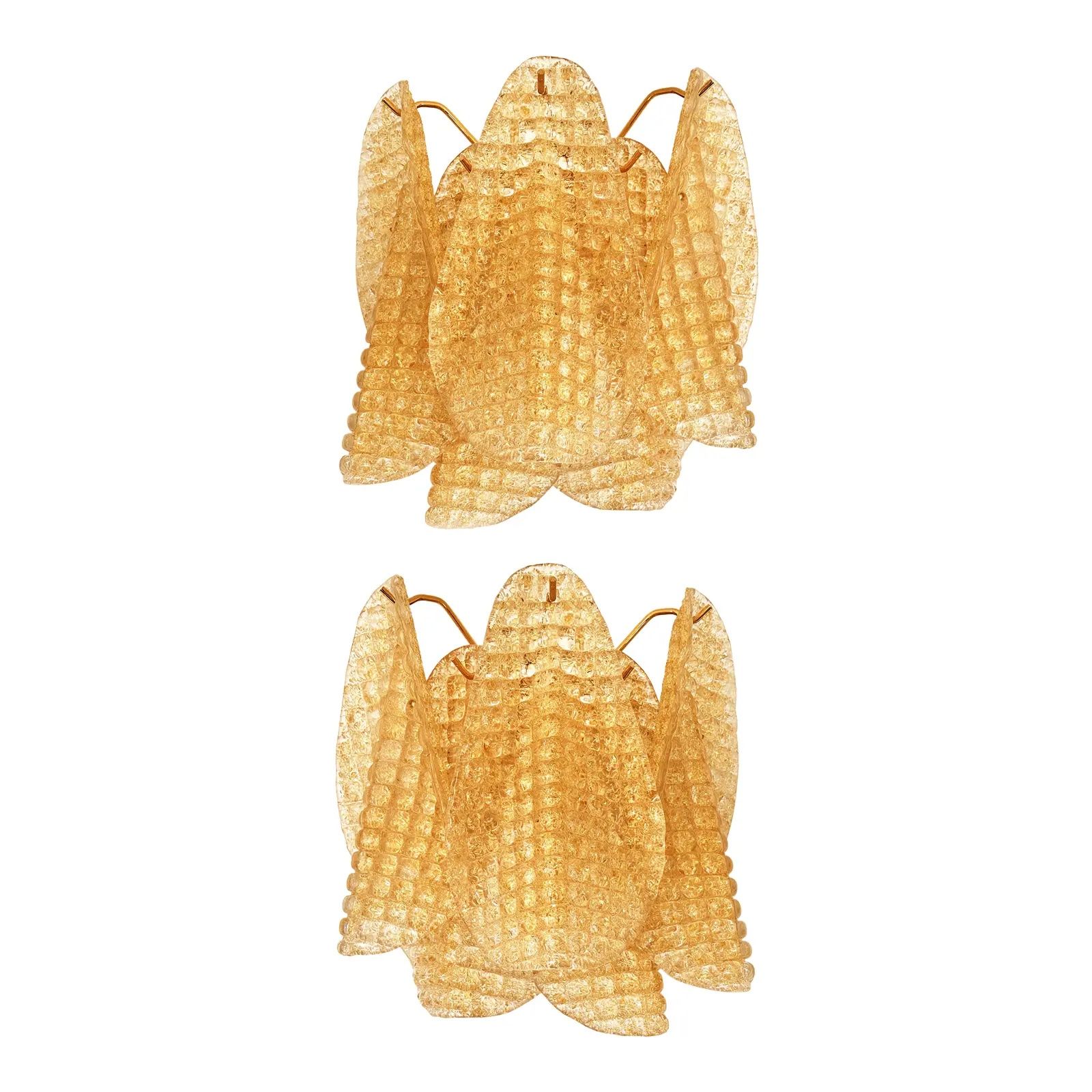 Contemporary Modern Gold "Granigli" "Rondini" Murano Glass Wall sconces.Set of Two.
