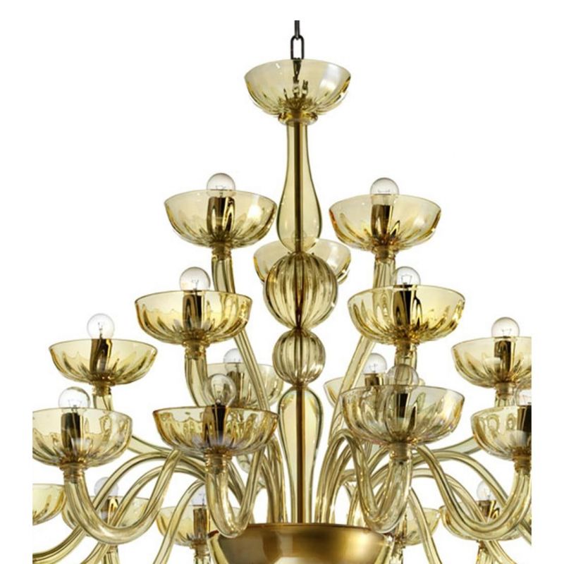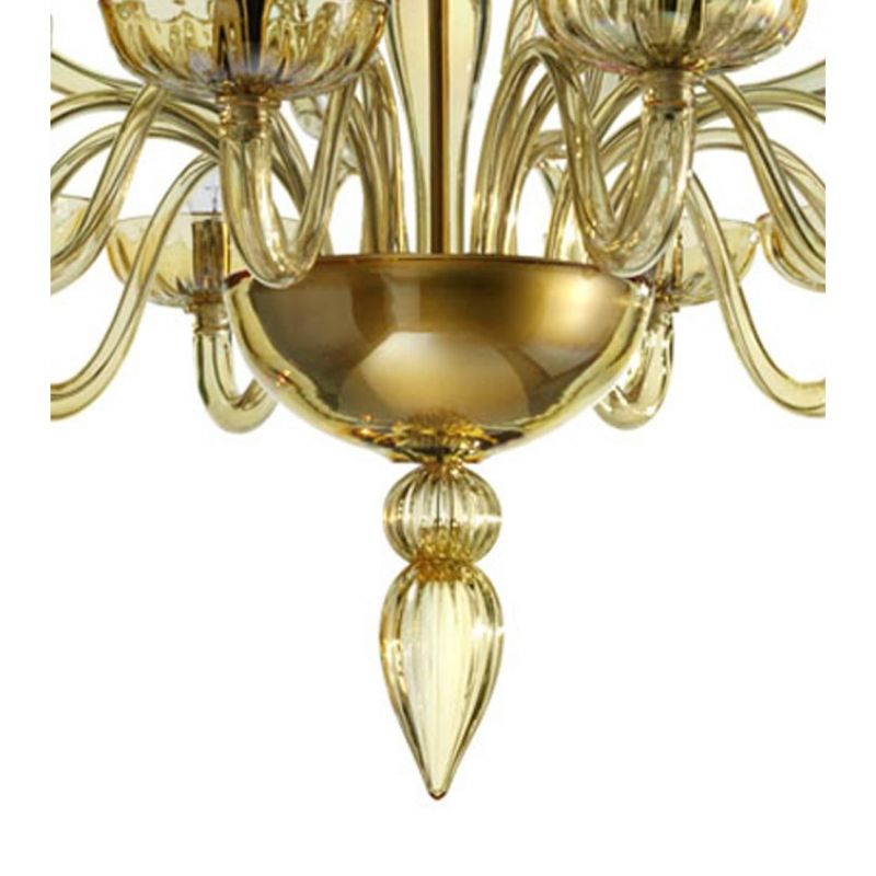 Elegant chandelier in Champagne color made in Murano glass and gold 24k metal frame.
