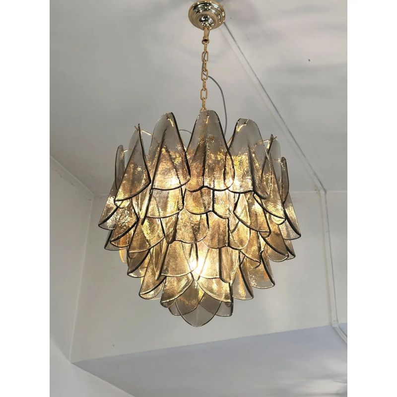 Contemporary Modern Smoked-Fumè "Rondini" Murano Glass Chandelier.