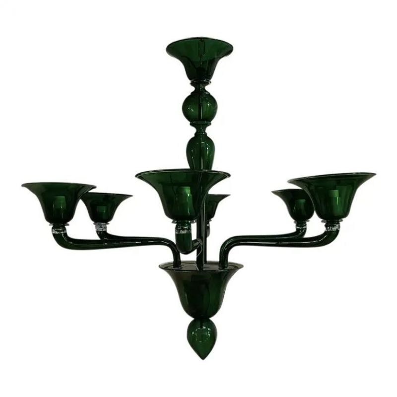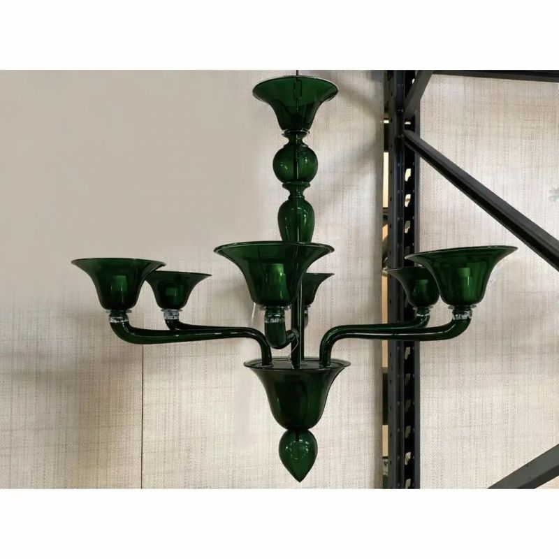Contemporary Murano Glass Chandelier in Decò Style Decorated in Translucent Dark Green Color