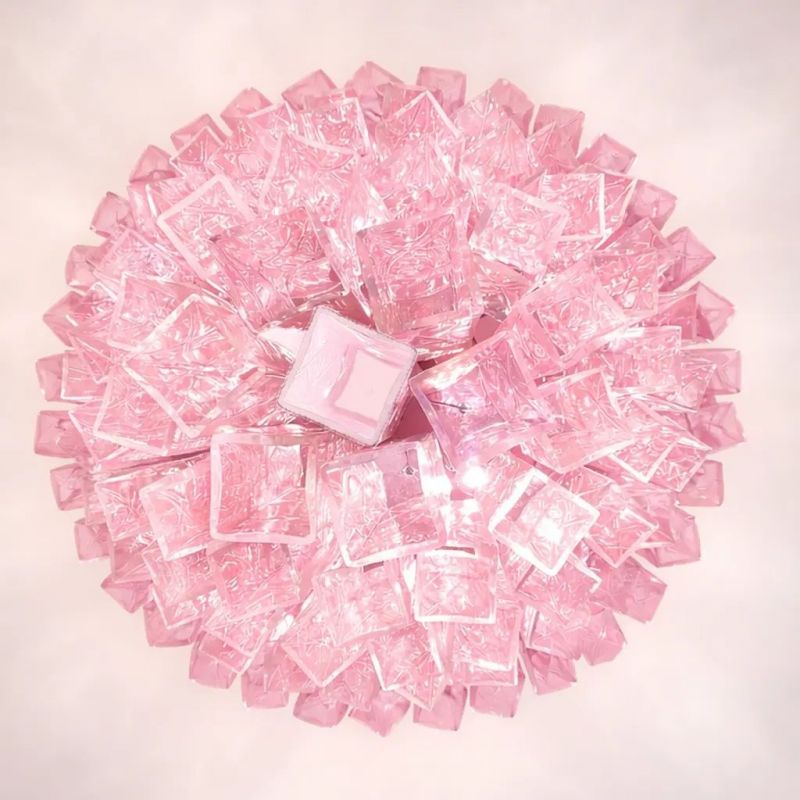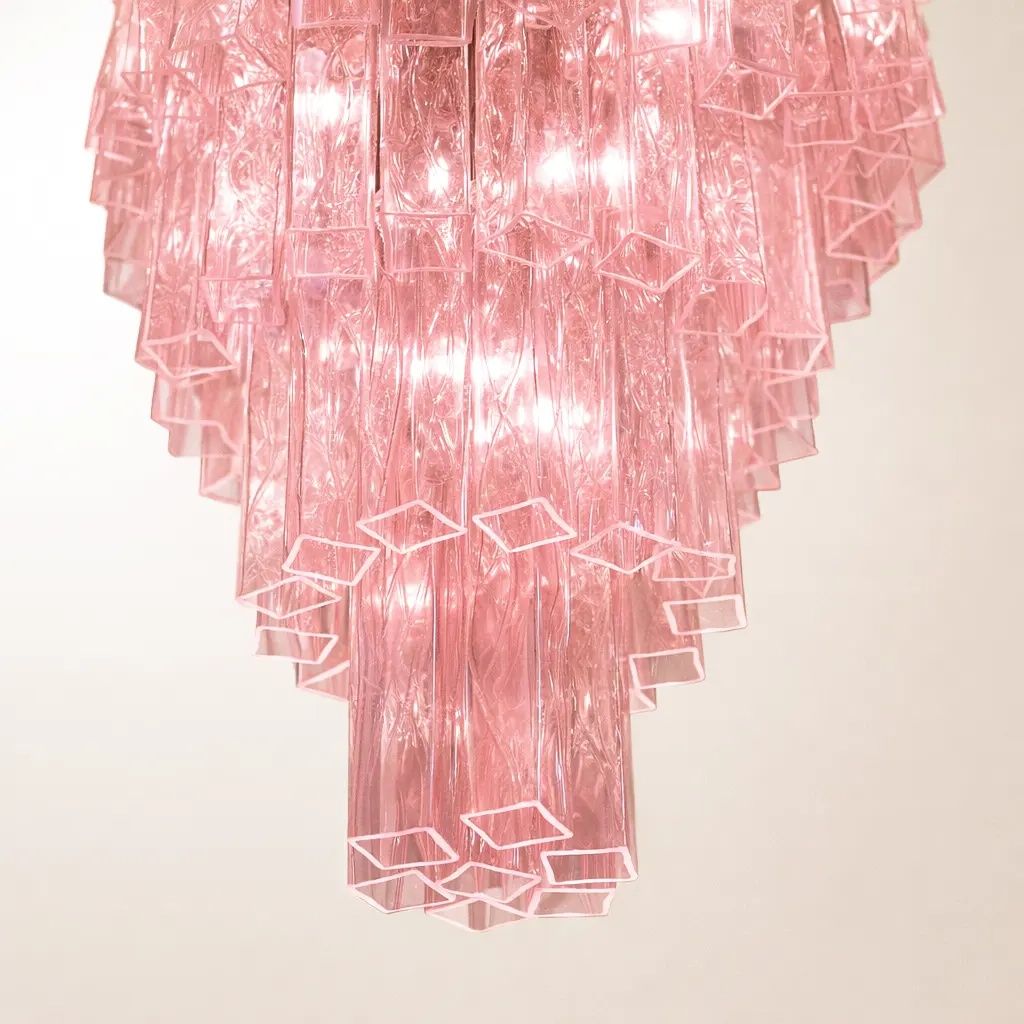 Five levels of pink “squared tubes” all in Murano glass, esclusive design by Simoeng