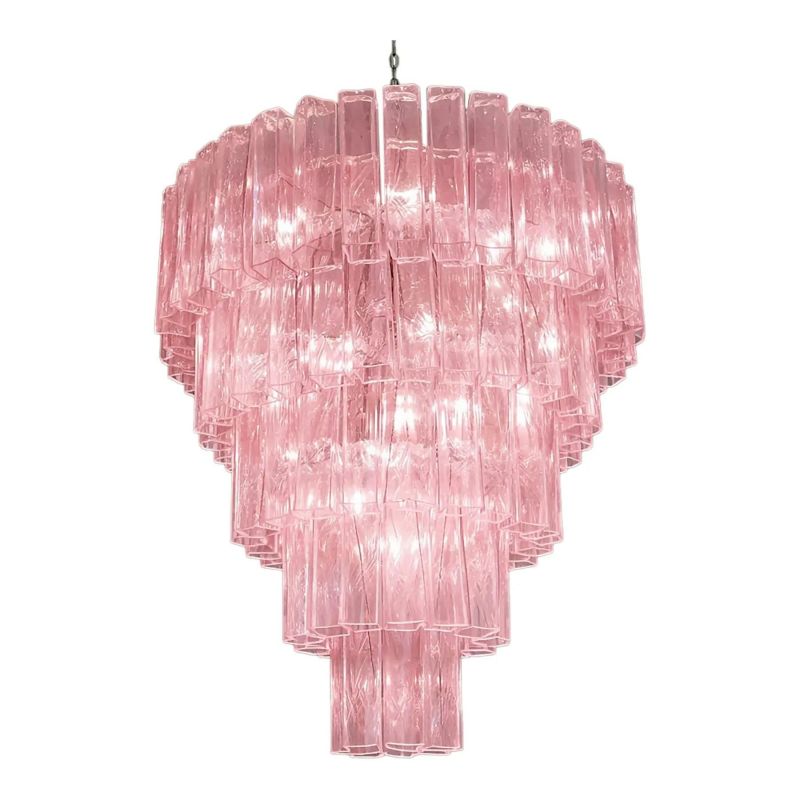 Contemporary Pink’ “Square Tubes” Murano Glass Chandelier