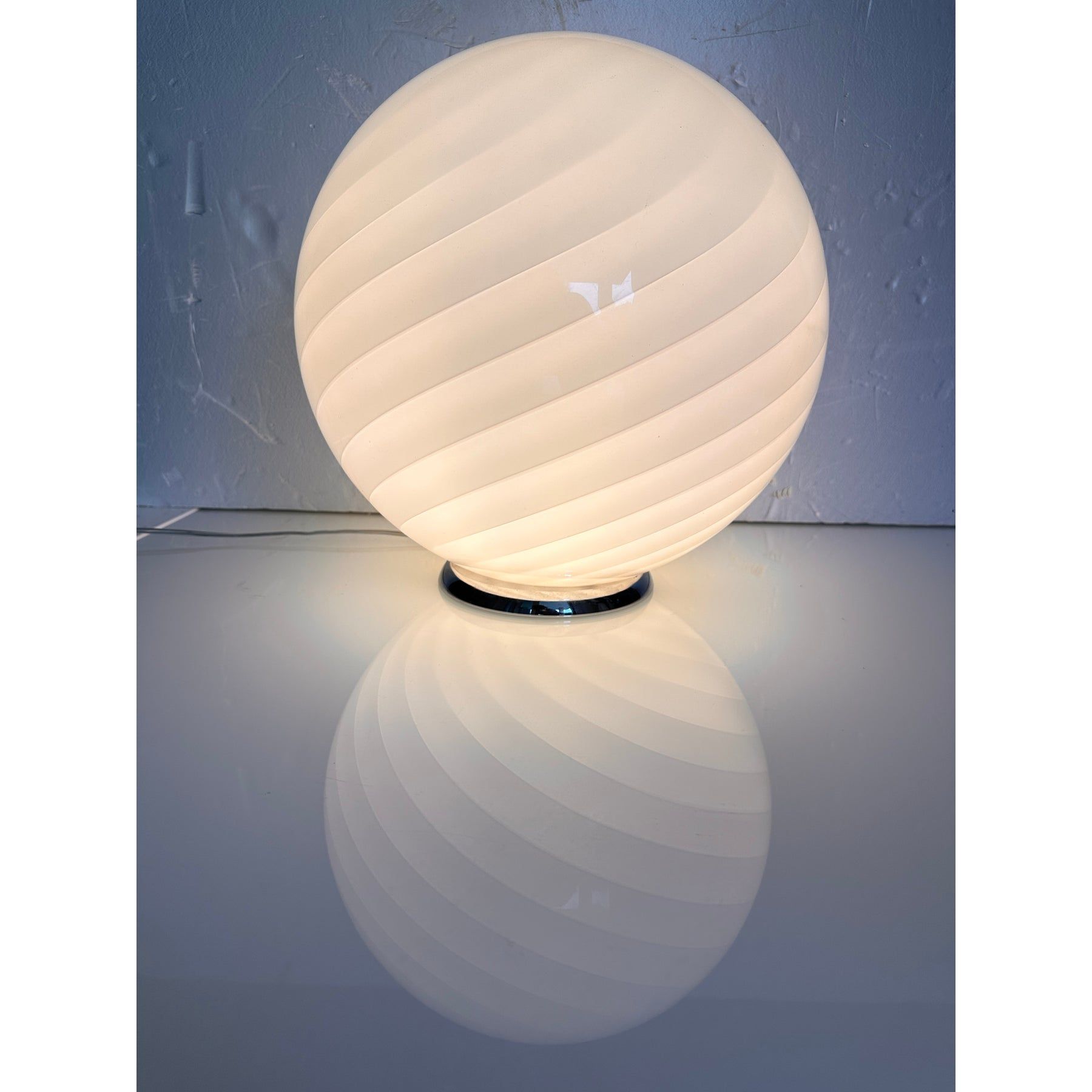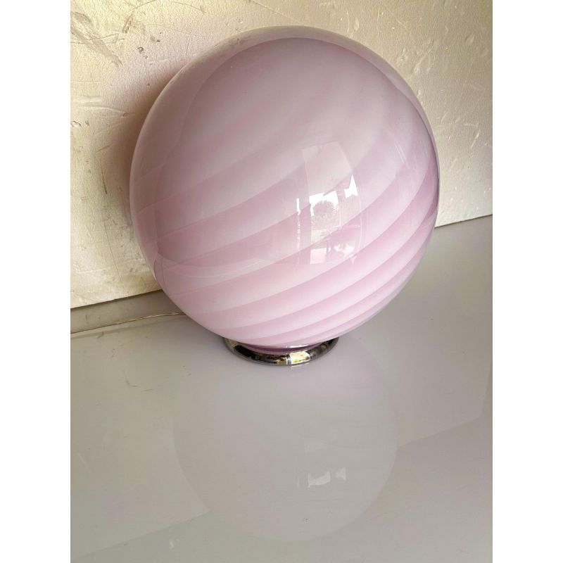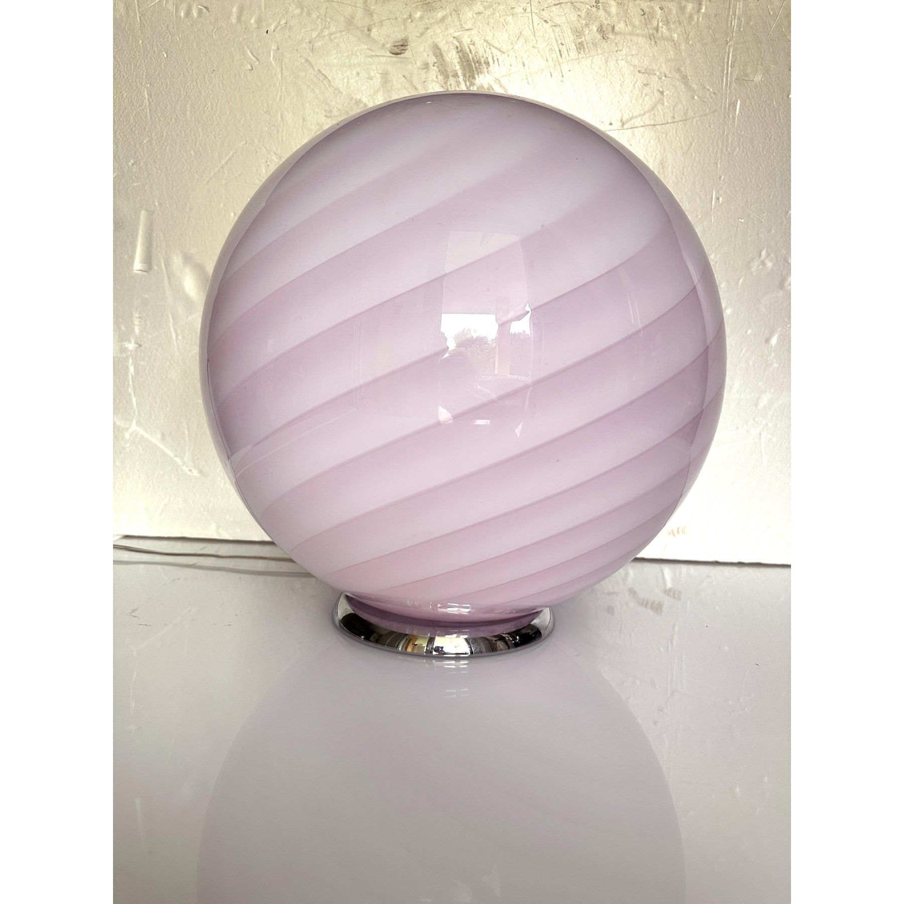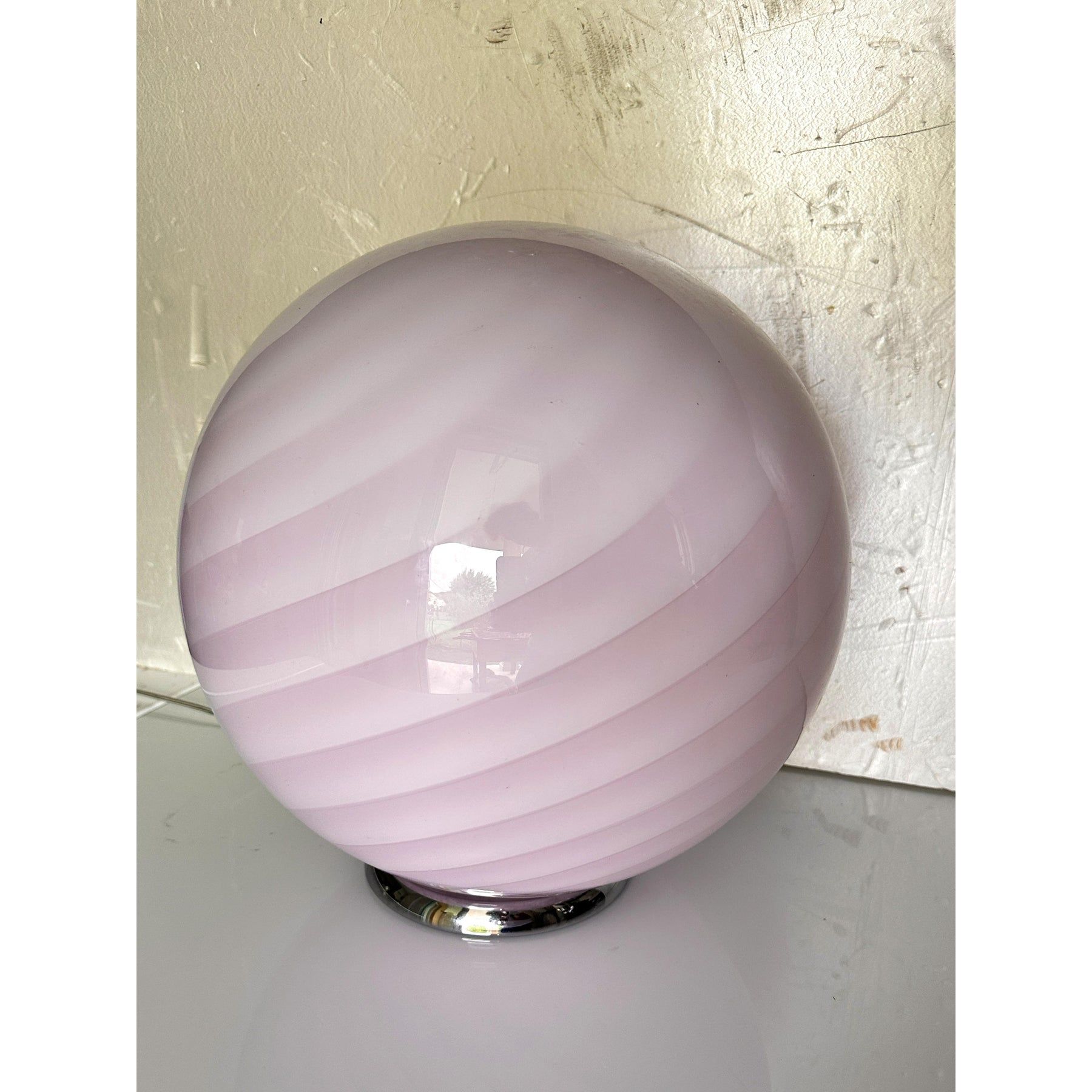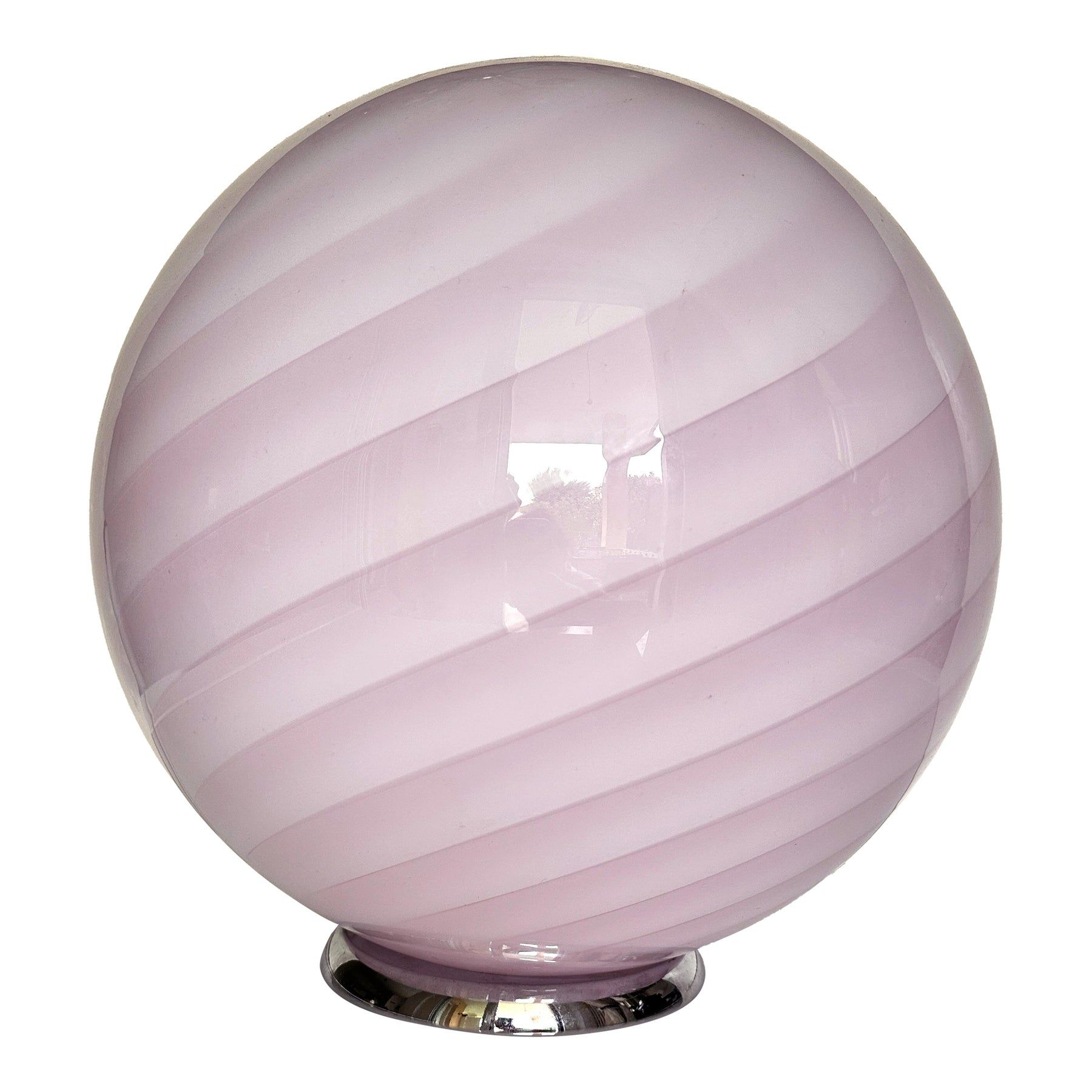 Contemporary Pink Swirl and Milky-White Sphere Murano Glass Table Lamp