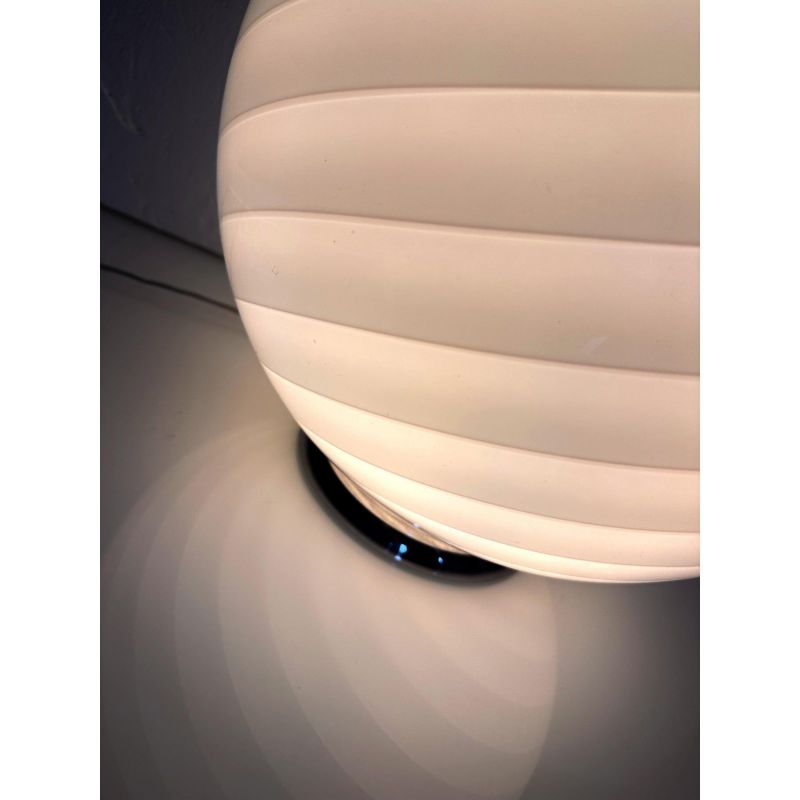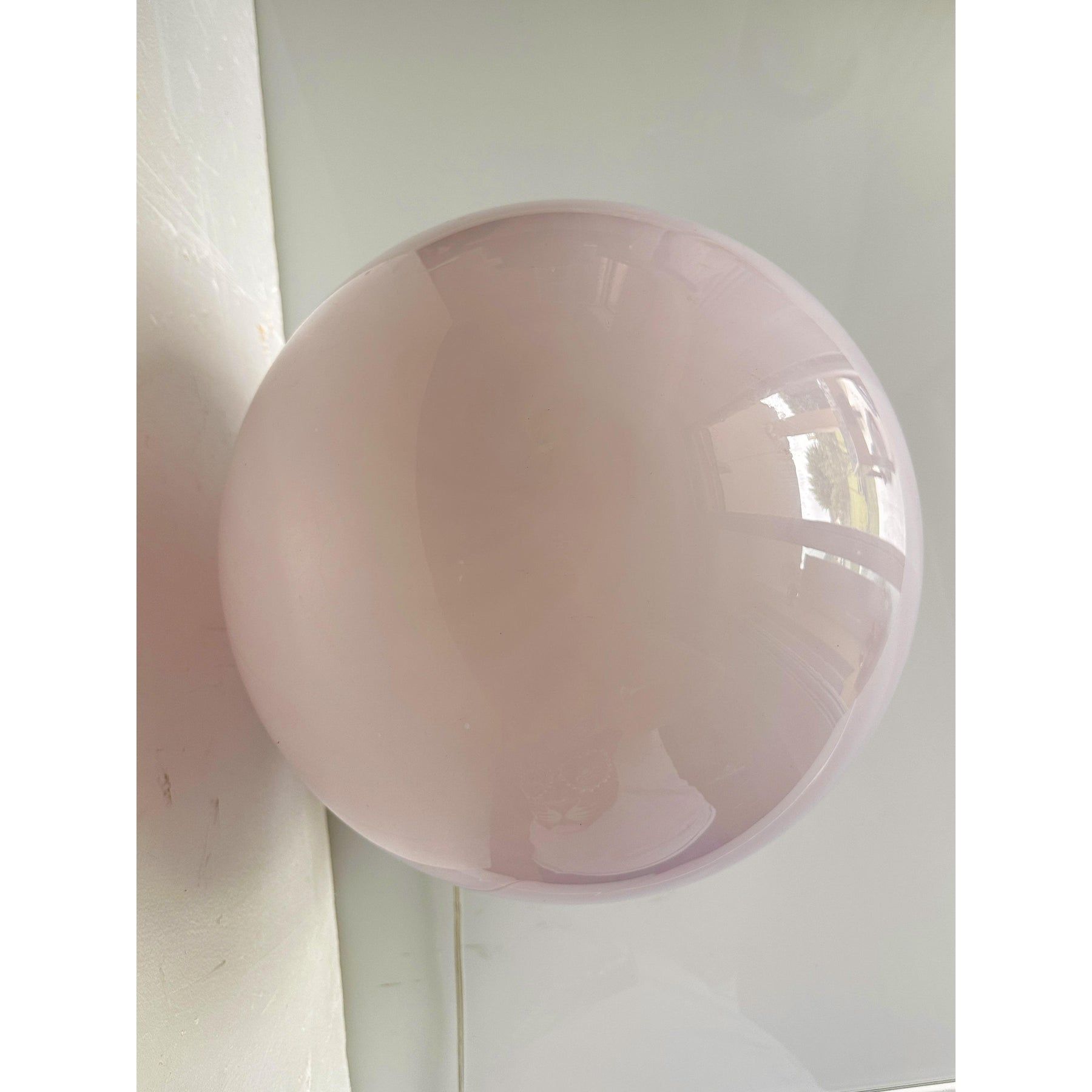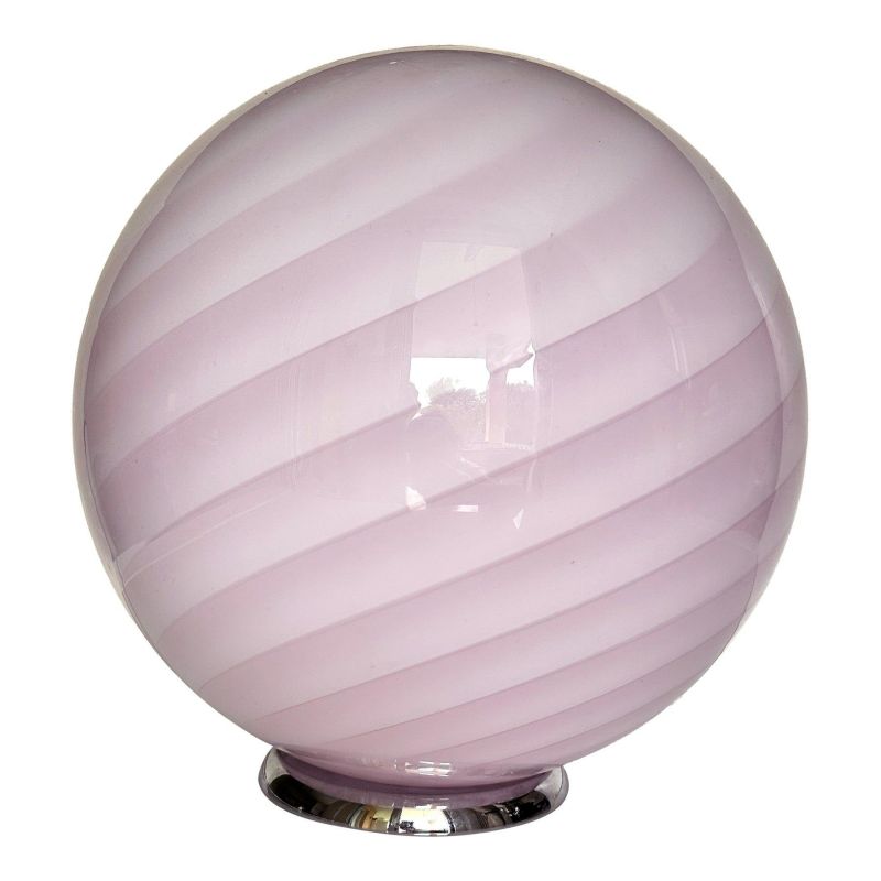 Impressive contemporary milky- white blowing Murano Glass Sphere with a swirl of pink rods .