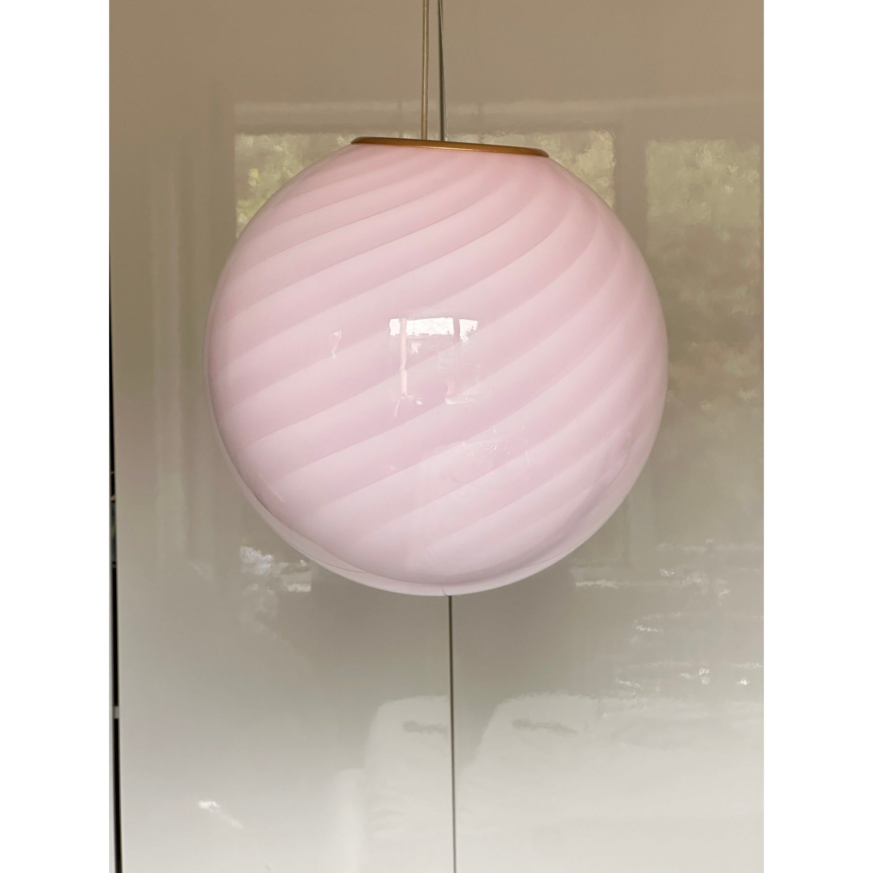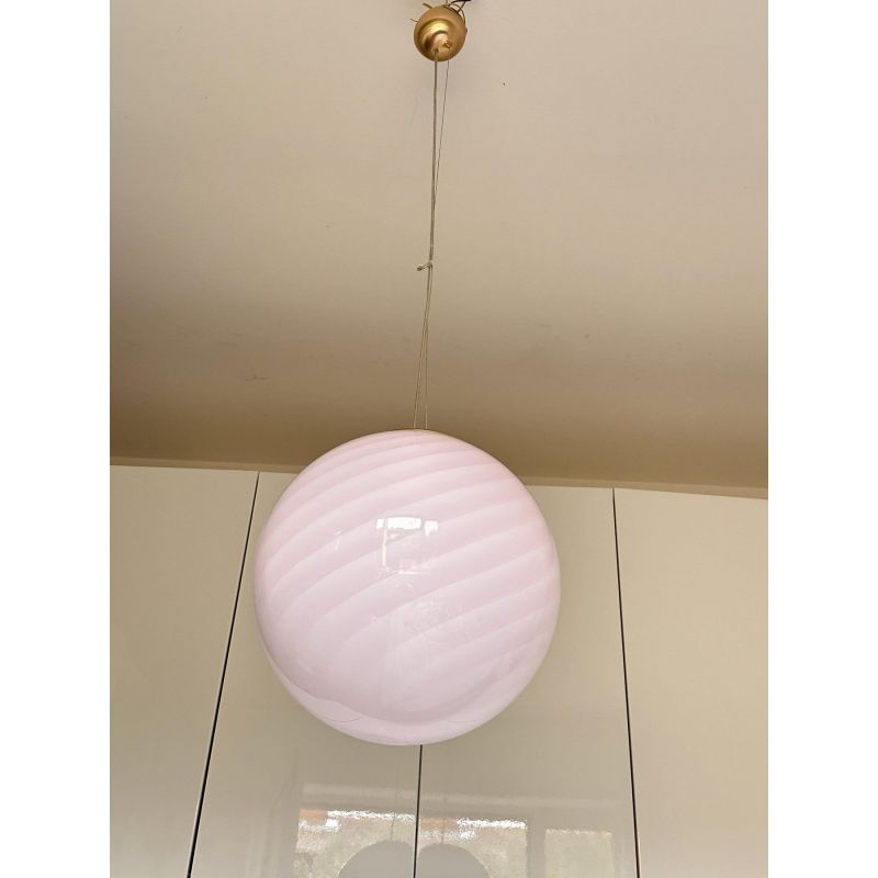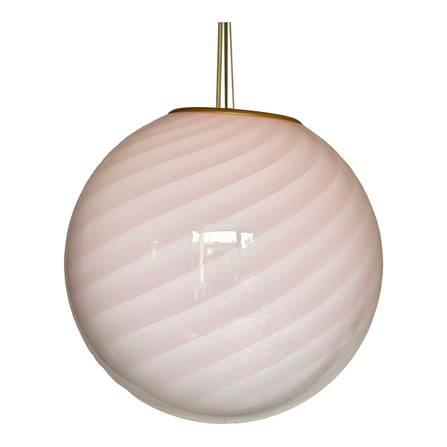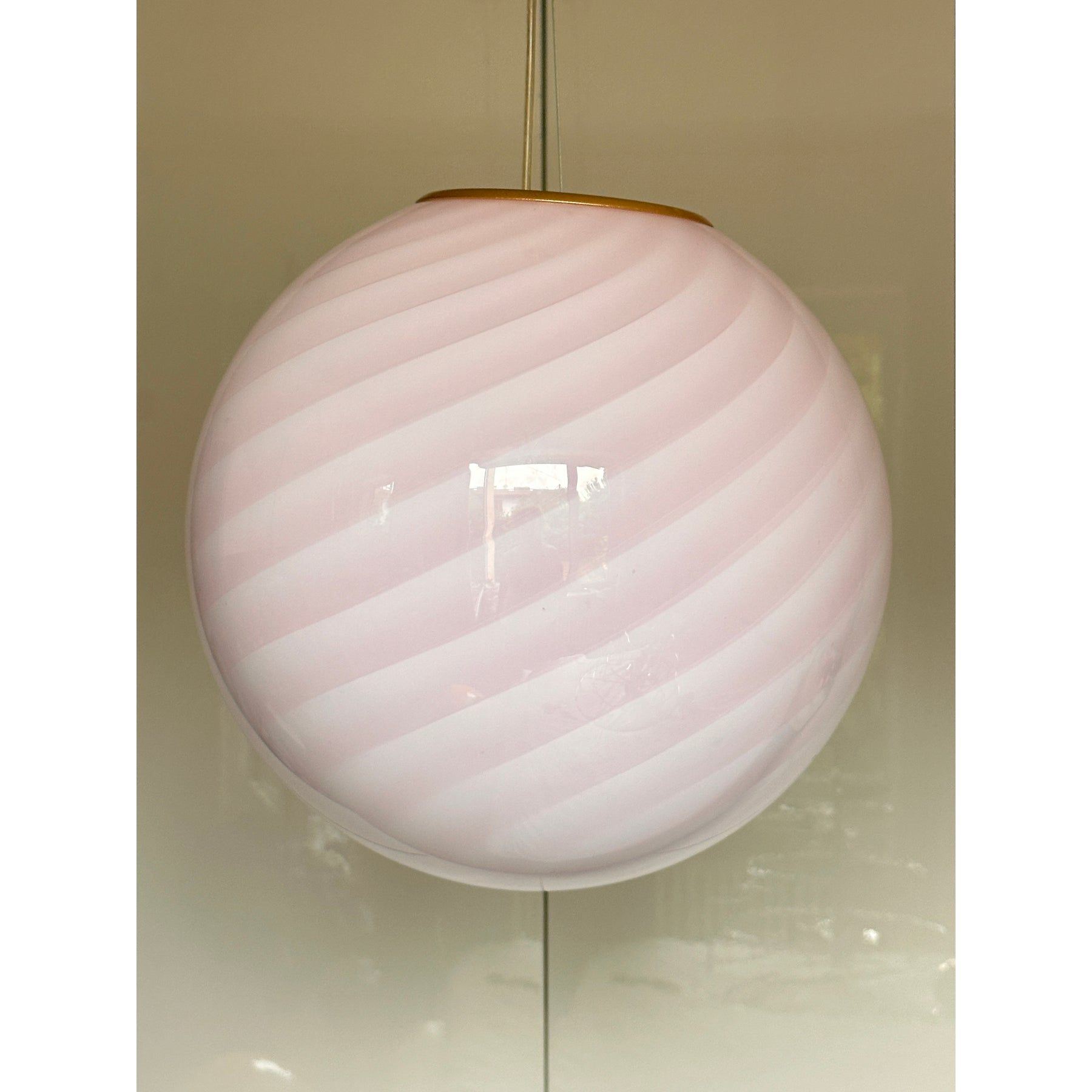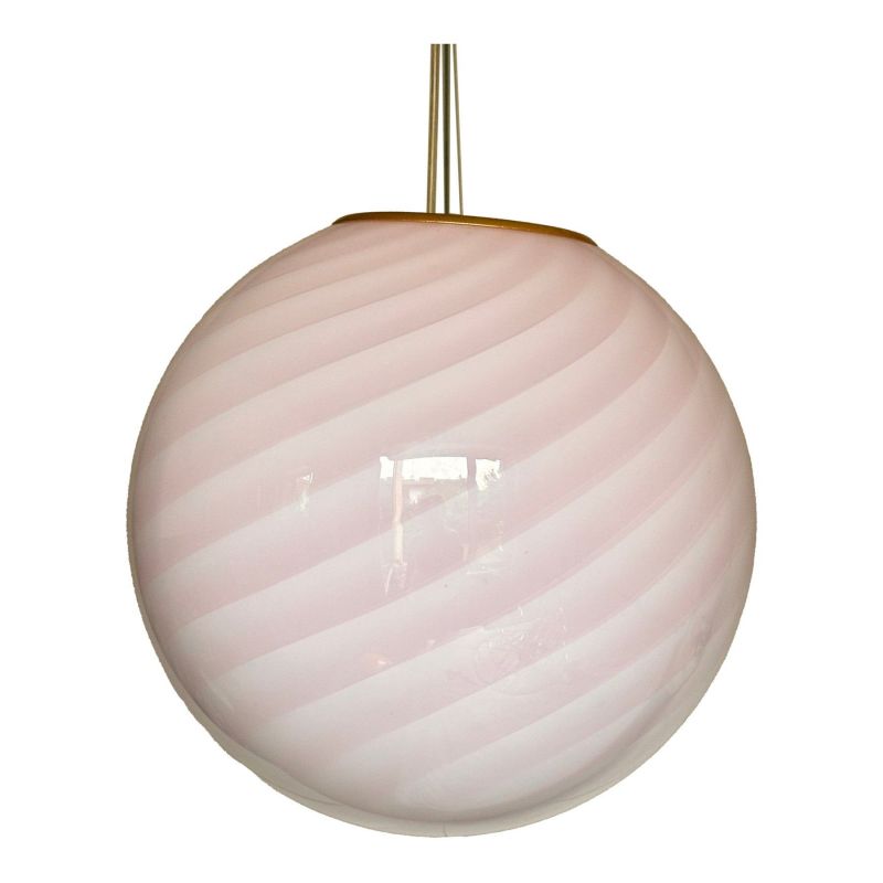 Contemporary Pink Swirl and Milky-White Sphere Pendant in Murano Glass