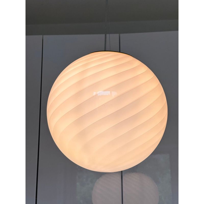 Impressive contemporary milky- white blowing Murano Glass Sphere with a swirl of pink rods .
