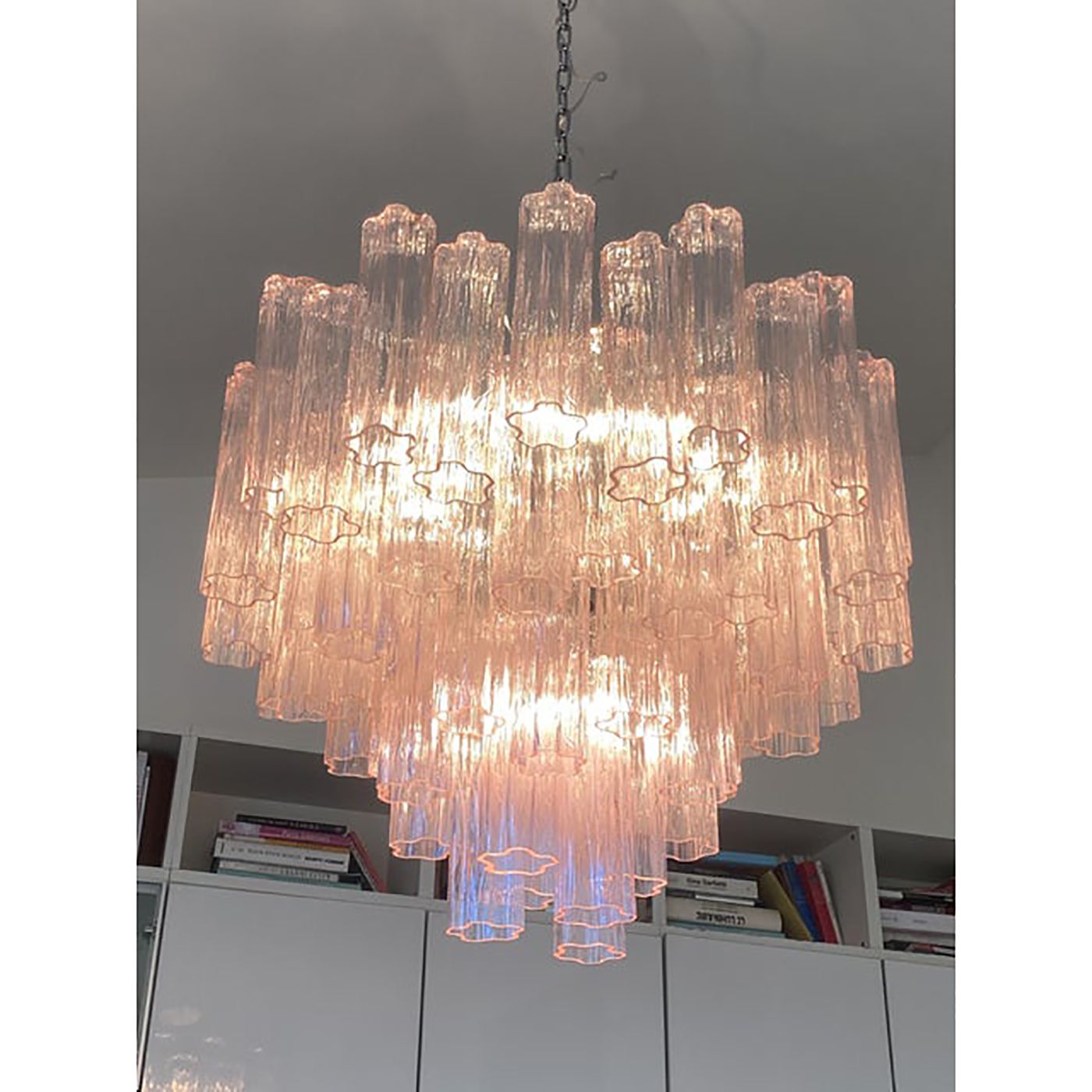 Contemporary pink “tronchi” Murano glass chandelier, a piece of hight italian craftmanship.