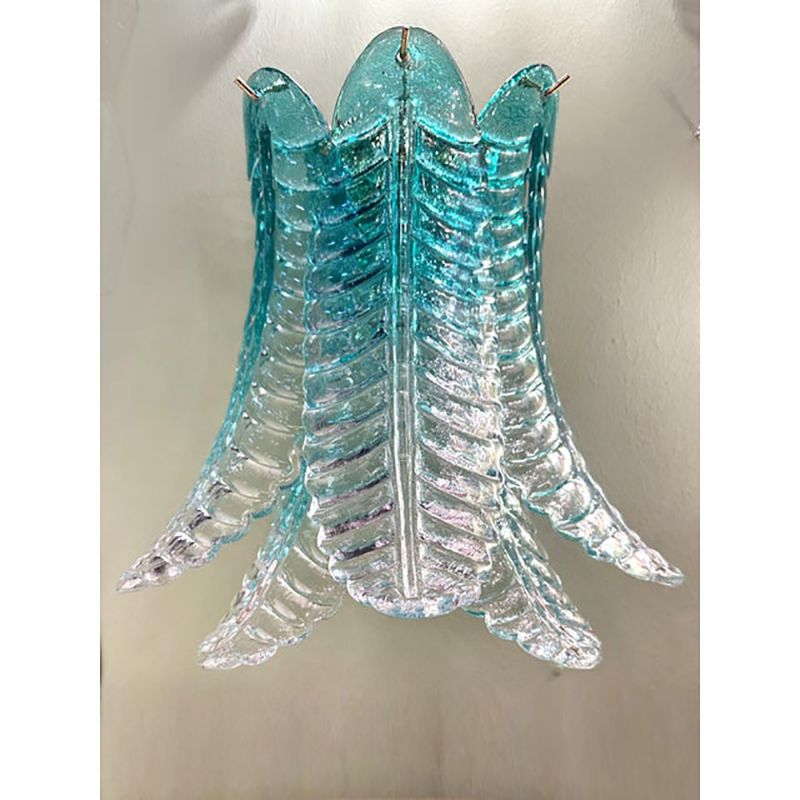 Transparent “Felci” Murano Glass Wall Sconce decorated in vanished wather-green color.